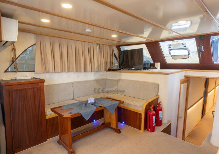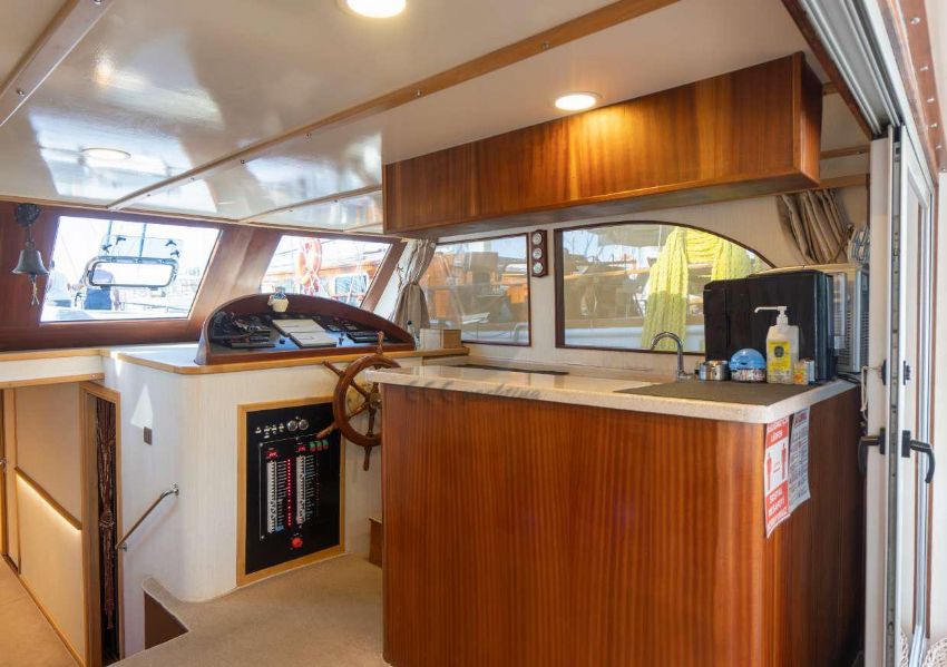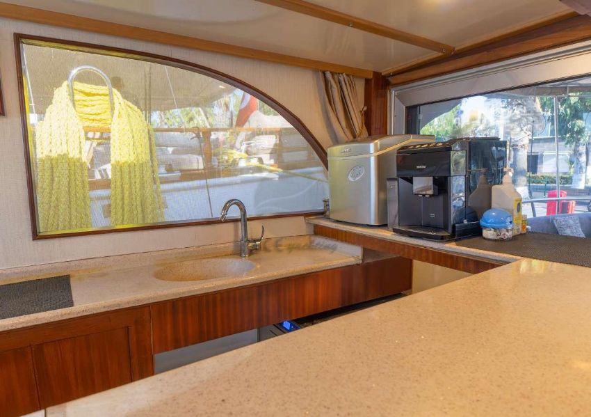 Tekne, 360 HP Volvo motoru ile güçlü ve güvenli bir seyir deneyimi sunarken, konforu artırmak için Wi-Fi, buz makinesi, taşınabilir Bluetooth hoparlör, yüksek kaliteli güverte ses sistemi ve su arıtma cihazı gibi donanımlarla donatılmıştır.