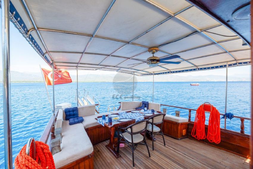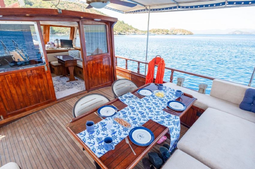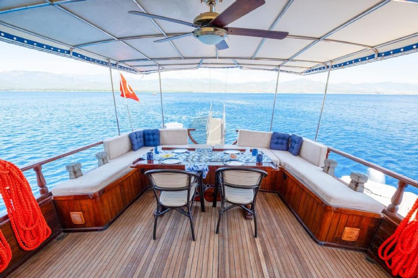 ELVENTO Gulet, 18 metre uzunluğunda ve 4,7 metre genişliğinde klasik bir yat olup, 2002 yılında inşa edilmiş ve 2019 ile 2024 yıllarında yenilenmiştir. Toplamda 8 kişiye kadar konaklama imkânı sunan ELVENTO, 3 konforlu kabine sahiptir: 1 Master Kabin (2 çift kişilik yatak) ve 2 çift kişilik kabin (çift kişilik yataklar). Her kabin, özel duş ve tuvalet ile donatılmış olup misafirlerine konforlu bir deneyim sunar. Teknenin iç mekânında konforlu oturma alanı ve sıcak su gibi olanaklar bulunurken, dış mekânda güneşlenme alanları, güverte duşu, kano ve balık tutma ekipmanları gibi imkanlar mevcuttur. Fethiye ve Göcek gibi popüler rotalarda mavi yolculuk deneyimi sunan ELVENTO Gulet, doğayla iç içe huzurlu ve keyifli bir tatil arayanlar için ideal bir seçenektir.
