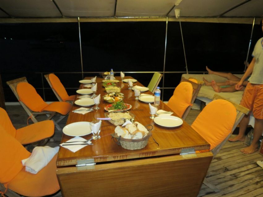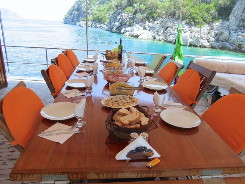 Dalış malzemeleri, Balık tutma malzemeleri, Güneş tenteleri, Güneş yatakları, Güvertede duş, Deniz merdiveni