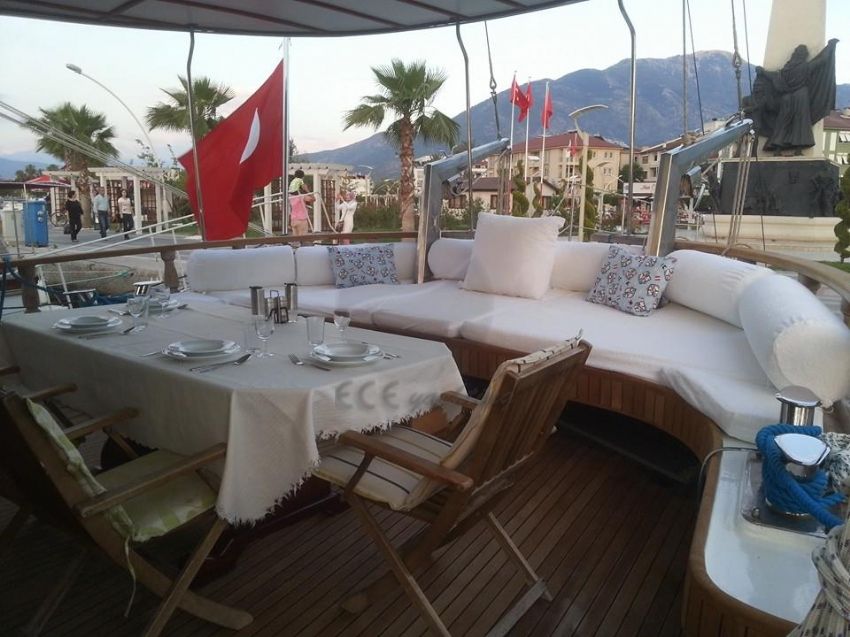 2010 yılında revize edilen teknemiz, Fethiye Limanına bağlıdır. Lüks kalitede ekonomik mavi yolculuk yapma imkanı sunan teknemizde, 3 kabin bulunmaktadır. Geniş yaşam alanlarıyla dikkat çeken teknemizde, deneyimli 2 kişilik mürettebatımız hizmet vermektedir. Kaptanımız aynı zamanda usta bir aşçı olduğundan dolayı kesinlikle yemeklerini tatmanızı öneririz. Fatoş 6 Yatı