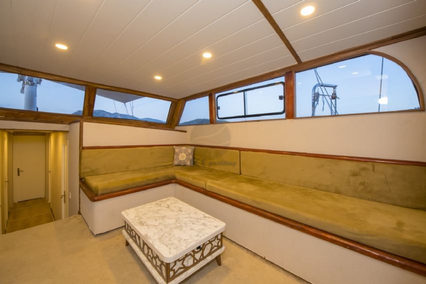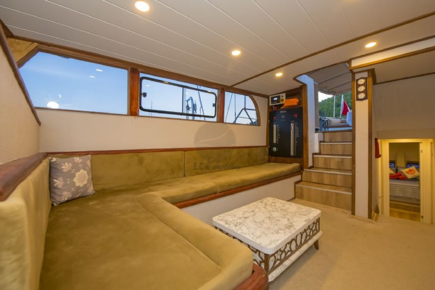 Gulet Flores’in salonu, misafirlerin keyifli vakit geçirebilmeleri için oturma grubu, yemek masası, bar, LCD TV, DVD oynatıcı ve müzik sistemi ile donatılmış durumda. Teknede Wi-Fi bağlantısı mevcut olup, misafirlerin günlük ihtiyaçlarını karşılayacak şekilde tasarlanmış bir mutfak da bulunuyor. Güverte alanı ise deniz ve güneşin tadını çıkarmak isteyenler için ideal bir ortam sunuyor. Arka güvertede geniş bir yemek masası ve oturma grubu yer alırken, ön güvertede güneşlenme minderleri ve ek bir oturma alanı misafirlerin hizmetinde. Ayrıca, deniz keyfini daha da artırmak isteyen misafirler için servis botu, kano ve paddle board gibi su sporları ekipmanları da mevcut.