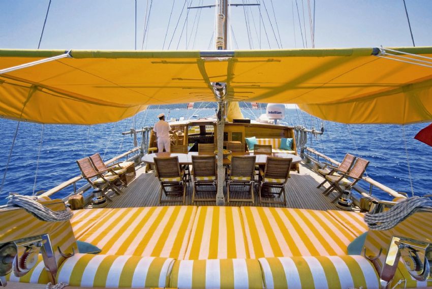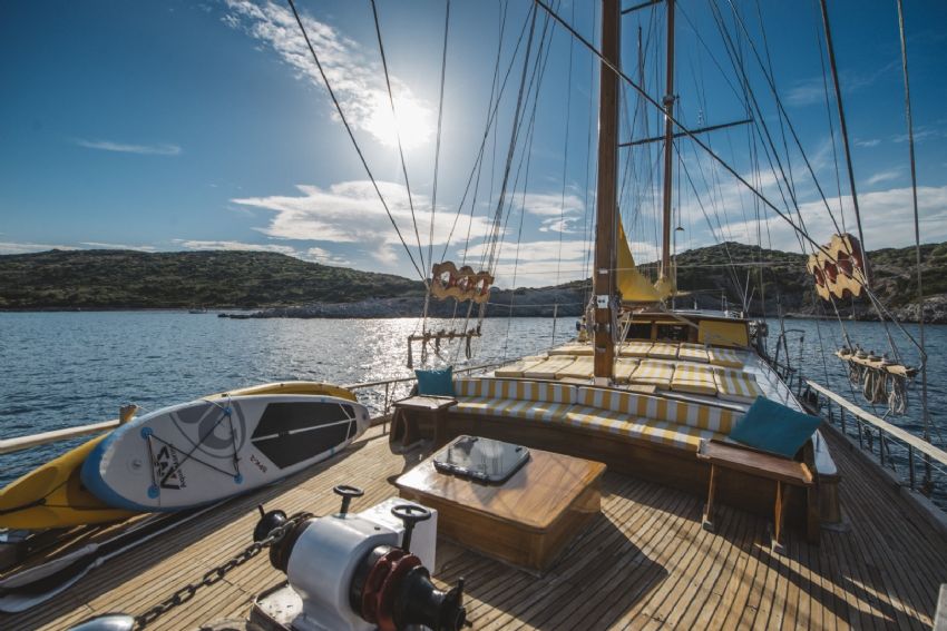 Balık tutma malzemeleri, Güneş tenteleri, Güneş yatakları, Güvertede duş, Deniz merdiveni