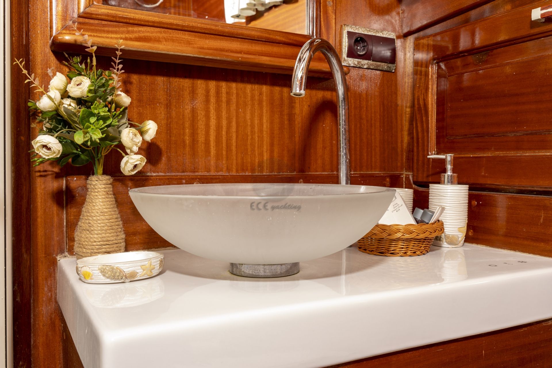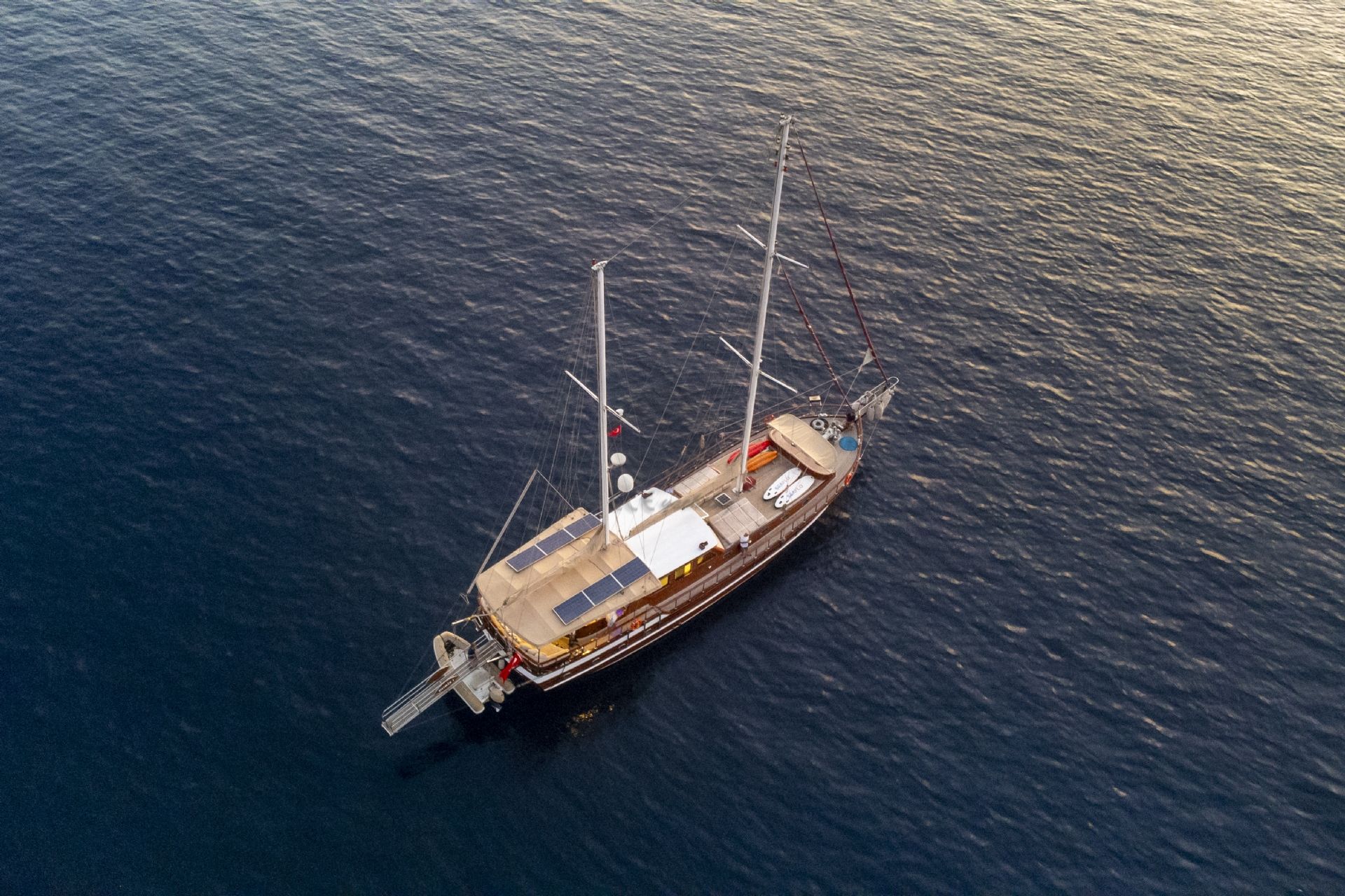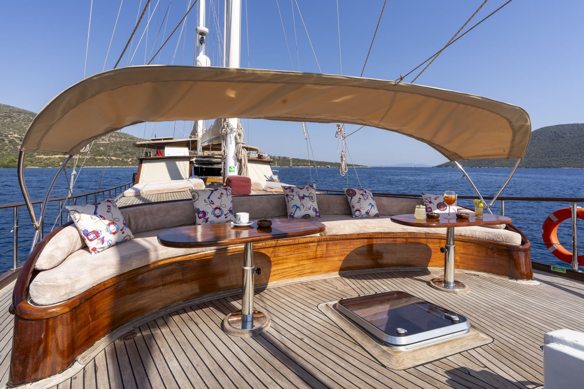 Dalış malzemeleri, Balık tutma malzemeleri, Güneş tenteleri, Güneş yatakları, Güvertede duş, Deniz merdiveni