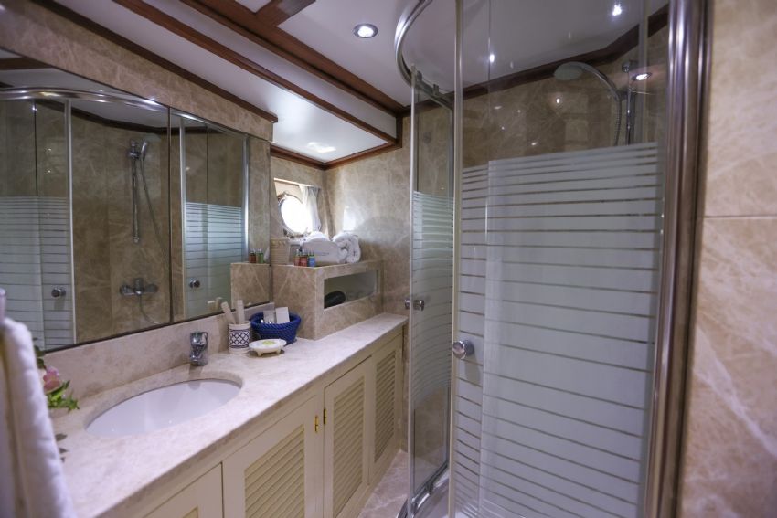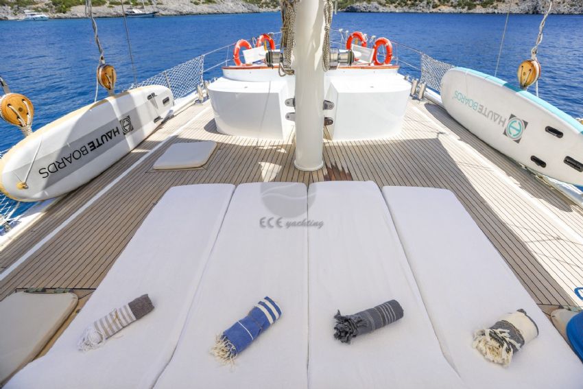 Şnorkel ekipmanları, Balık tutma malzemeleri, Güneş tenteleri, Güneş yatakları, Güvertede duş, Deniz merdiveni, Yüzme platformu