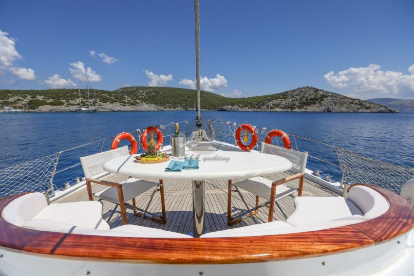 Bodrum'un masmavi sularında unutulmaz bir mavi yolculuk deneyimi arayışındaysanız, bu yat tam size göre! 8 kişiye kadar konaklama kapasitesiyle, lüks ve konforlu bir tatil sizi bekliyor. Geleneksel gulet tasarımına, modern bir dokunuş katan tasarımıyla ve profesyonel güler yüzlü mürettebatıyla siz misafirlerine keyifli bir deniz tatili sunmayı bekliyor. Aileler ve çiftler için ideal olup, eğlence için paddleboard, su kayağı ve kano gibi birçok su sporunu bünyesinde barındırıyor.