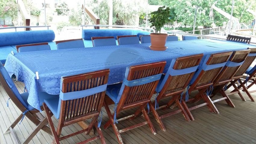 26 m. uzunluğu ve 6,80 m. genişliği ile teknemiz 16 kişi kapasiteye sahiptir. Teknemizde bulunan 8 kamaranın 6 tanesi çift kişilik, 2 tanesi ise 2 ayrı tekli yataktan oluşur. İç yaşam alanlarında açık renk duvar kağıdı kullanılması daha ferah ve temiz bir hava yaratmaktadır. Teknemiz 27 kW jeneratörü sayesinde günlük 4- 6 saat klima hizmeti verilebilir. Teknemiz ekonomik & klimalı kategoride yer almaktadır. Sınıfında ekonomik fiyat avantajı sayesinde bir çok misafirimizin öncelikli tercihleri arasında yer almaktadır. Teknemizin ön güvertesinde 16 kişinin güneşlenebileceği rahat güneşlenme alanı bulunur. Arka güverte 16 kişilik yemek masası ve 4 - 5 kişinin oturabileceği ayrıca bir alan bulunur. G.oğlu Yatı.