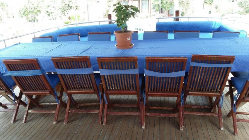 Güneş tenteleri, Güneş yatakları, Güvertede duş, Deniz merdiveni