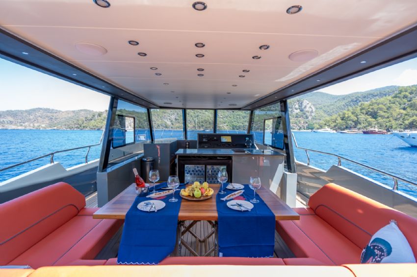 Şnorkel ekipmanları, Balık tutma malzemeleri, Güneş tenteleri, Güneş yatakları, Güvertede duş, Deniz merdiveni