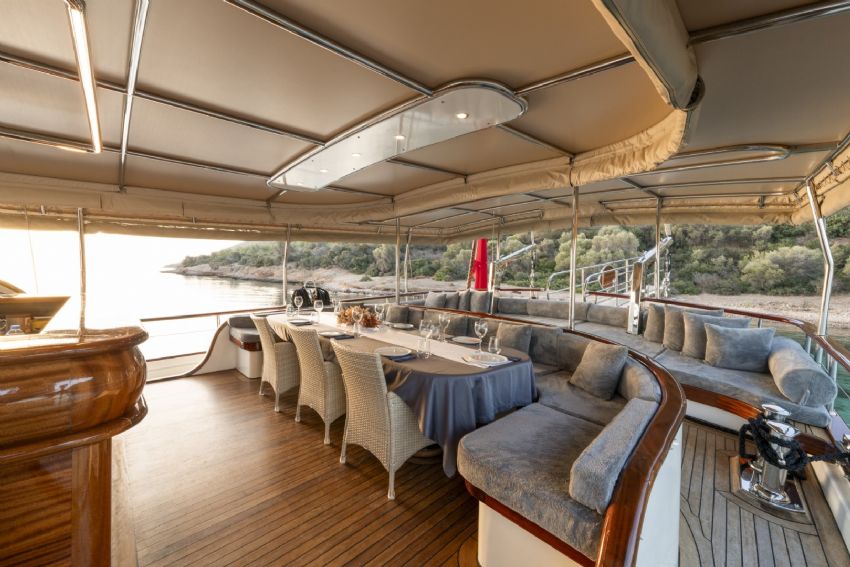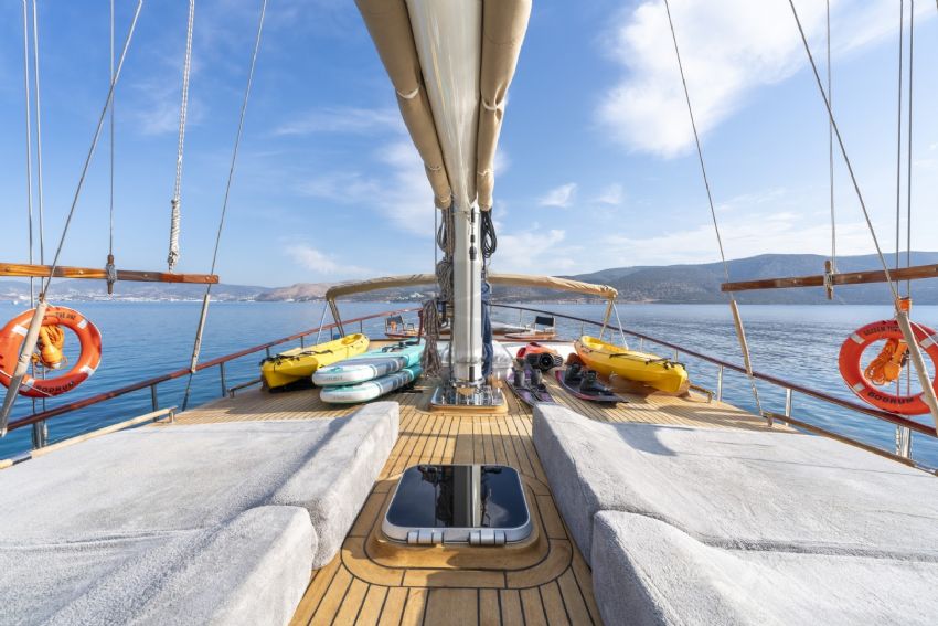 Şnorkel ekipmanları, Balık tutma malzemeleri, Güneş tenteleri, Güneş yatakları, Güvertede duş, Deniz merdiveni