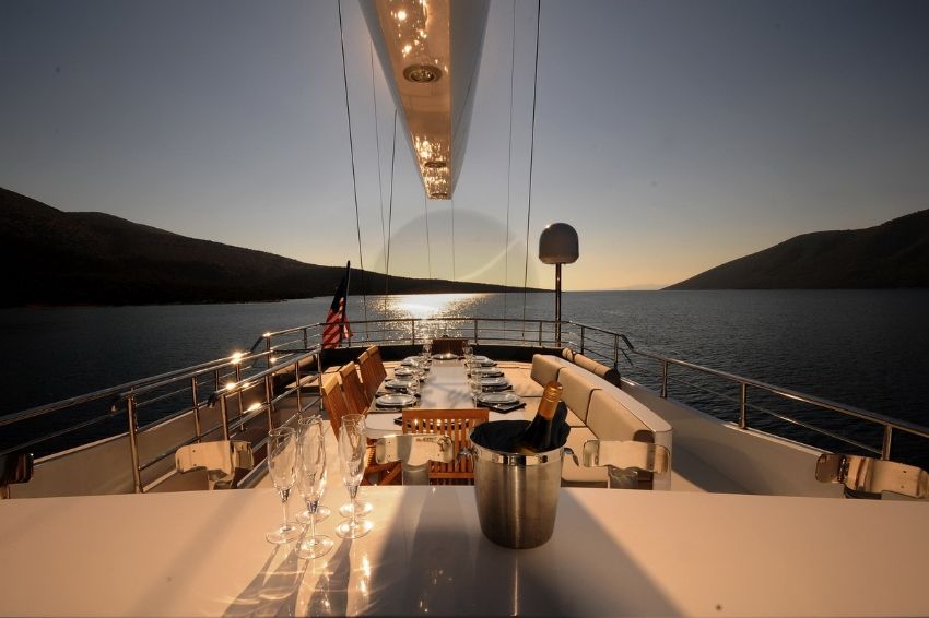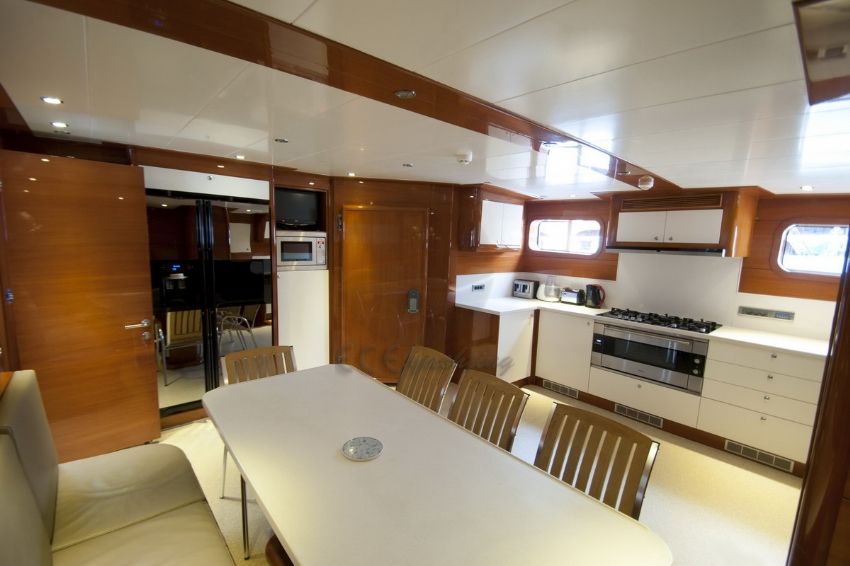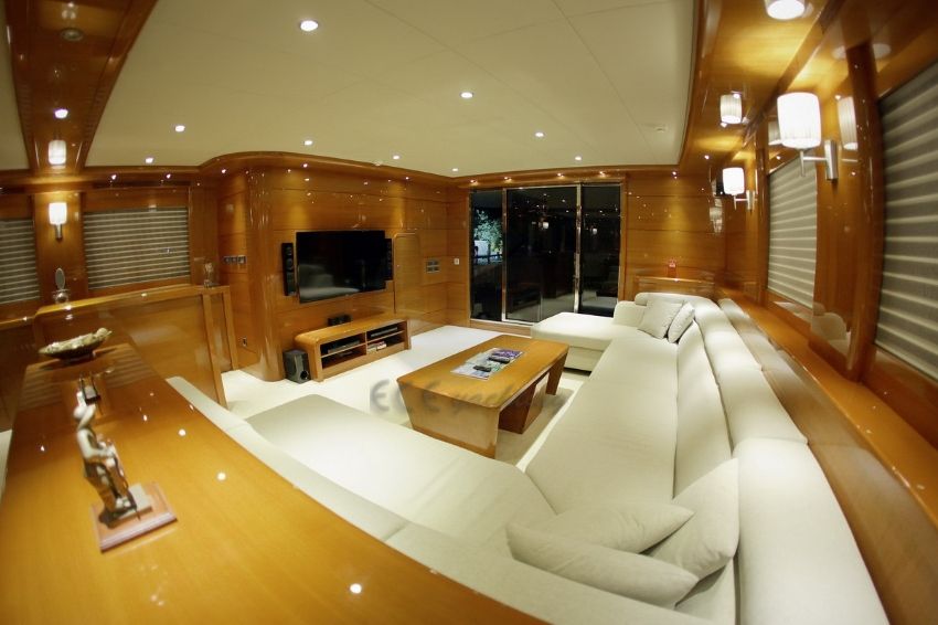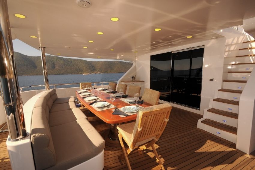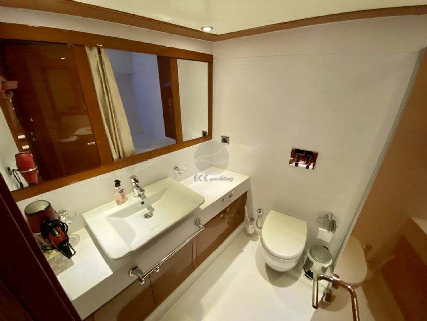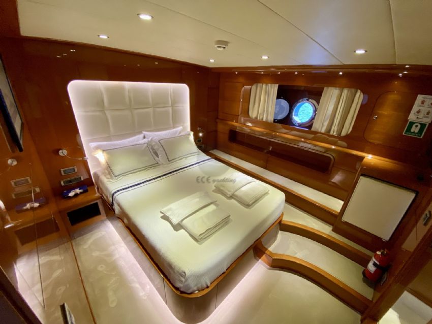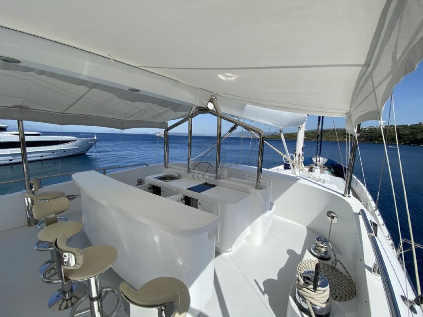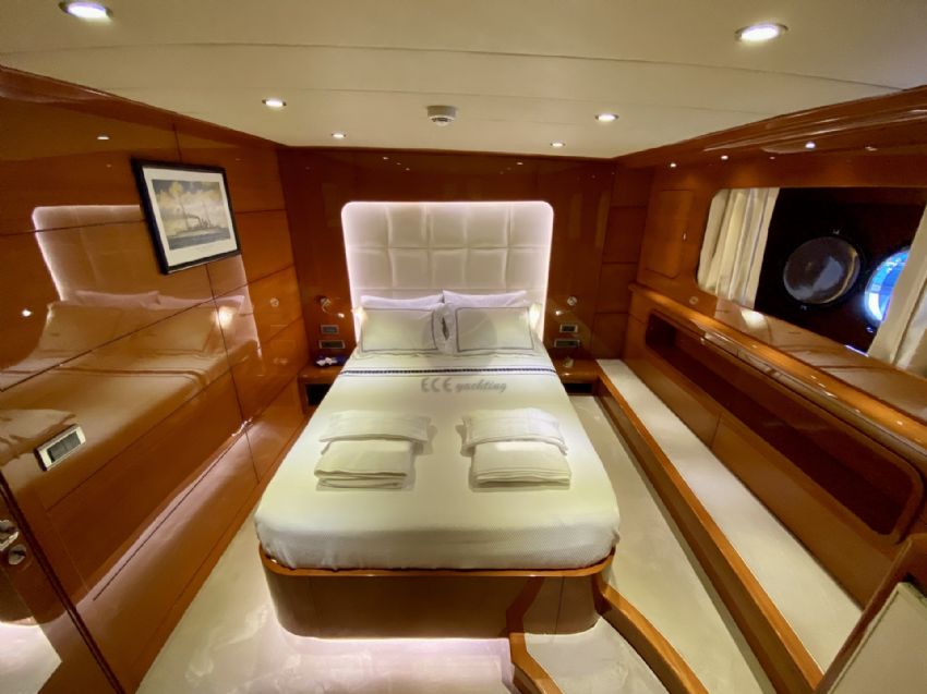 14 Kişi kapasiteli ultra lüks yatımız denizde kuğu gibi süzülmesiyle görenleri kendine hayran bırakmaktadır. Gülmaria, 2014 yılında denize indirilmiş ve tüm ekipman ve donanımın yapımında son teknoloji kullanılmıştır. 37 metre uzunluğundaki ultra lüks yatımızda 1 master, 1 vip, 2 double ve 2 triple kabin bulunmaktadır. Geniş yaşam alanları ve kabinlerinin yanı sıra, çok şık tasarlanmış olan salonumuzda konforlu bir oturma grubu ve tv ünitesi ile serin havalarda kullanılmak üzere yemek masası bulunmaktadır. Flybridge dediğimiz 2. kat teknemizin en büyük avantajlarından olup, bu alanda rahatça güneşlenebilir, içeceğinizi keyifle yudumlayabilir veya seyir sırasında dinlenebilirsiniz. Türk karasularında internet bağlantısı bulunan ultra lüks yatımız ile mavi yolculuk tatilinizde kalite ve konforu, deneyimli ekibinin birinci sınıf hizmetiyle de keyifli hissedeceksiniz. Gülmaria Yatı.