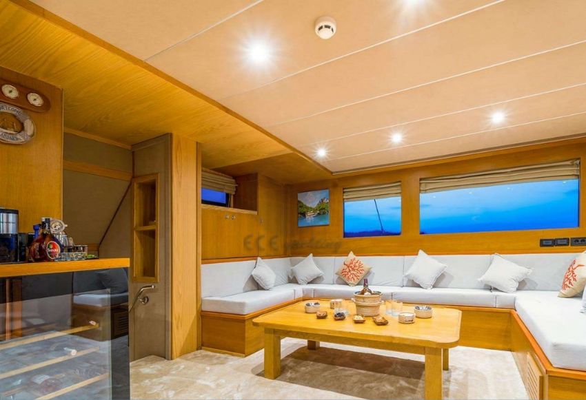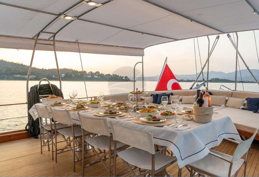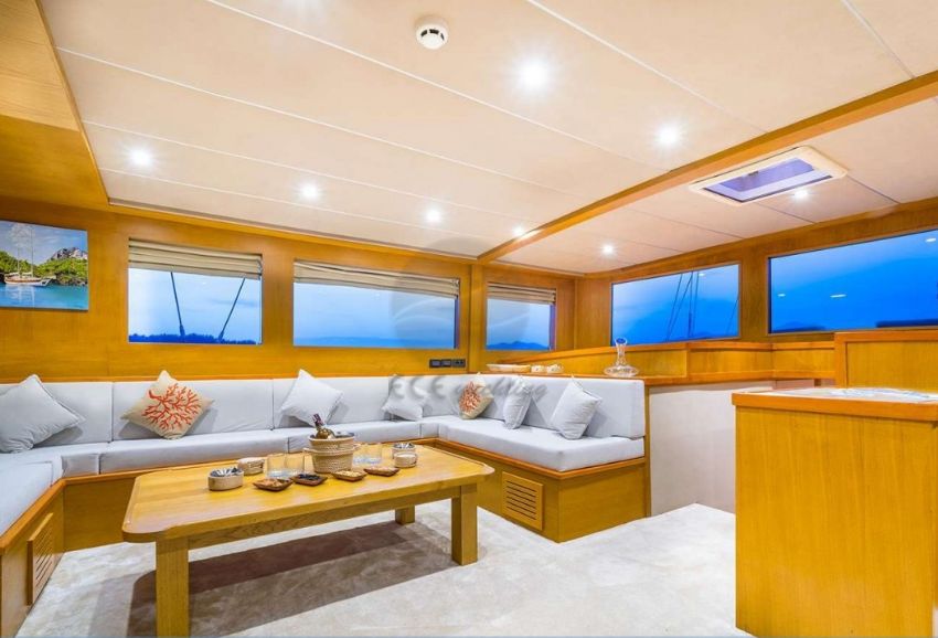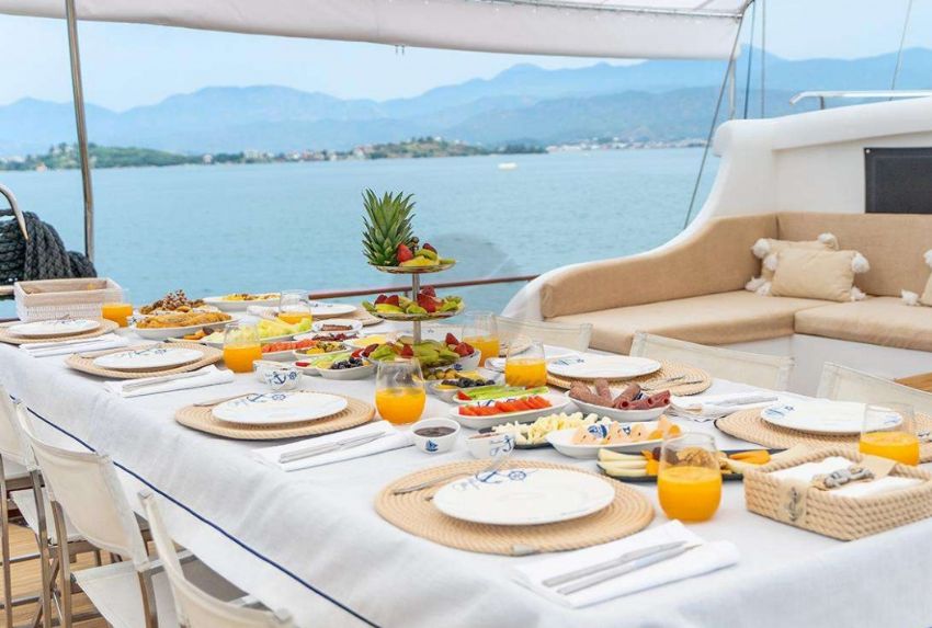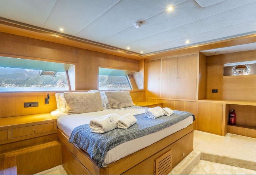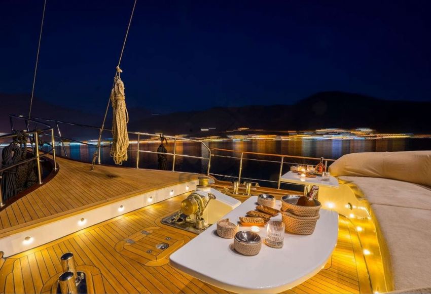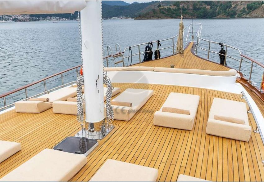 5 kabinli, 30 metre uzunluğunda ve 6.90 metre genişliğinde olan 2011 yapımı, 2021 yılında yenilenmiş Happy Days Guleti, Fethiye ve çevresinde lüks konaklama ve deniz turları sunmaktadır. 5 kişilik mürettebatıyla, modern tasarımı ve geniş yapısıyla dikkat çekmektedir. İç mekanları şık ve konforlu mobilyalarla döşenmiş olup, kullanılan yüksek kaliteli malzemeler konforu artırmaktadır. Gulet tatili, mavi yolculuk olarak da bilinen eşsiz bir deneyim sunar. Denizin ortasında huzurlu bir atmosferde seyahat ederken, sabahları masmavi sularda uyanabilir, gün boyu gizli koyları keşfedebilir ve doğal güzelliklerin tadını çıkarabilirsiniz. Happy Days Guleti, konforlu kabinleri ve özel hizmet anlayışıyla misafirlerine unutulmaz bir tatil vaat eder. Ayrıca, teknede sunulan lezzetli yemekler, yerel tatlarla harmanlanarak her öğünde damaklarda iz bırakır. Güneşlenme alanları, su sporları ekipmanları ve eğlence aktiviteleriyle dolu bir tatil sizleri bekliyor.