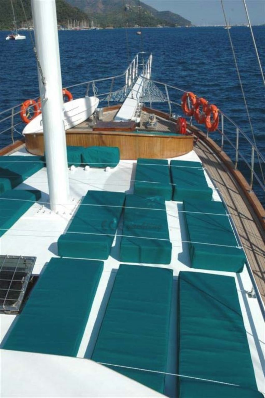 29 Metre uzunluğa sahip teknemiz, uzun yıllar değişmeyen güler yüzlü ekibi ile siz mavi tur seven değerli misafirlerimizin hizmetindedir. 2007 yılında denize indirilen teknemiz, mavi yolculuk tatil planlarınızda 16 kişiye kadar olan nezih gruplarınızı ağırlayabilmektedir. Her biri alanında deneyimli ve güler yüzlü 4 kişilik mürettebatımızın, misafir memnuniyeti odaklı servis anlayışıyla teknemizdeki tatilinizden unutulmaz anılarla ayrılacaksınız. Harun Bey Yatı.