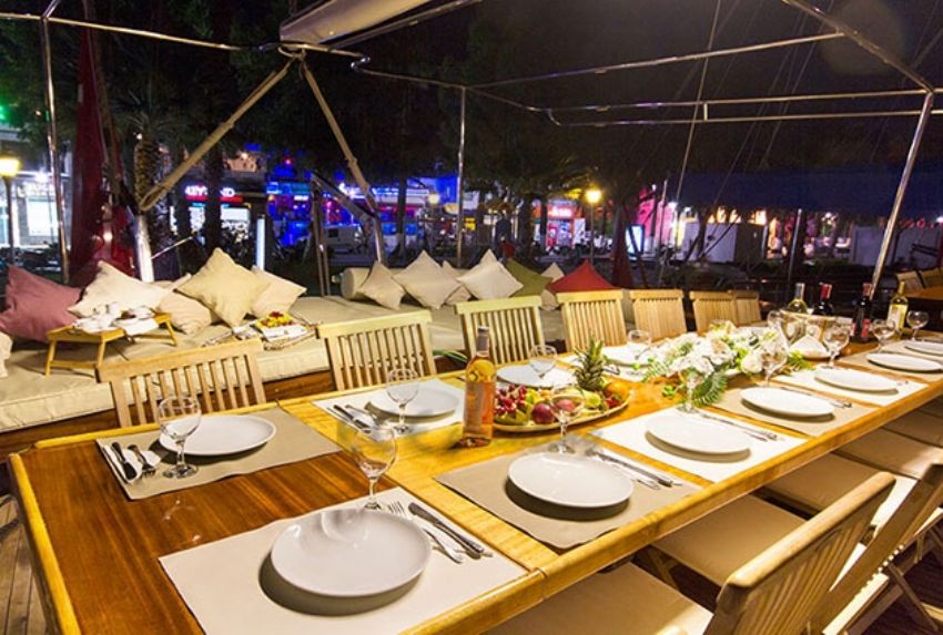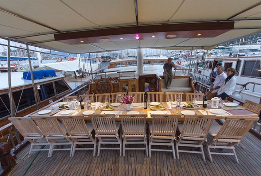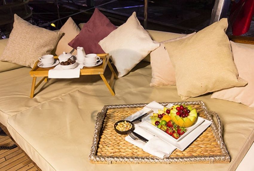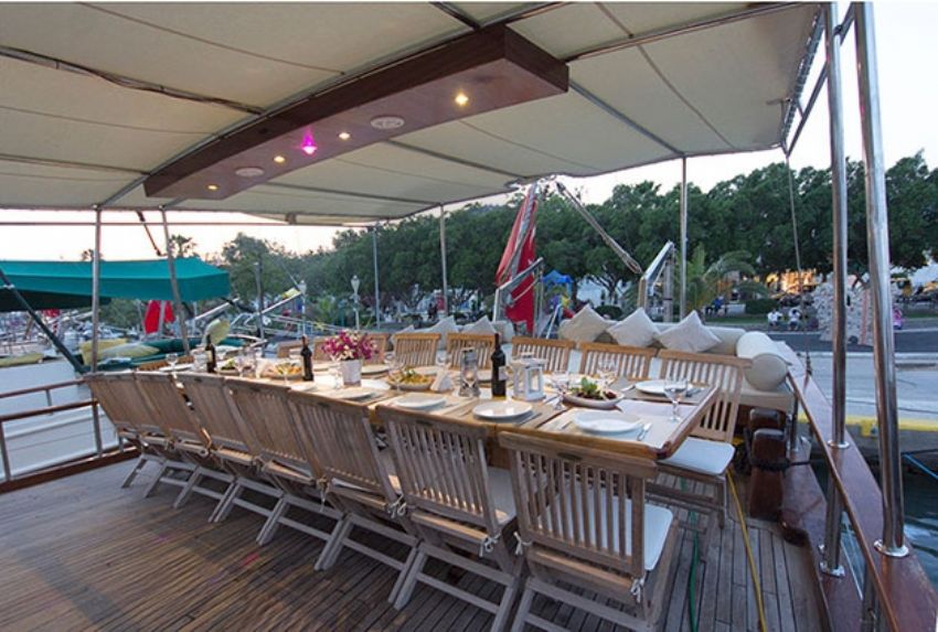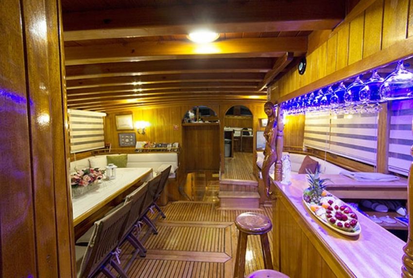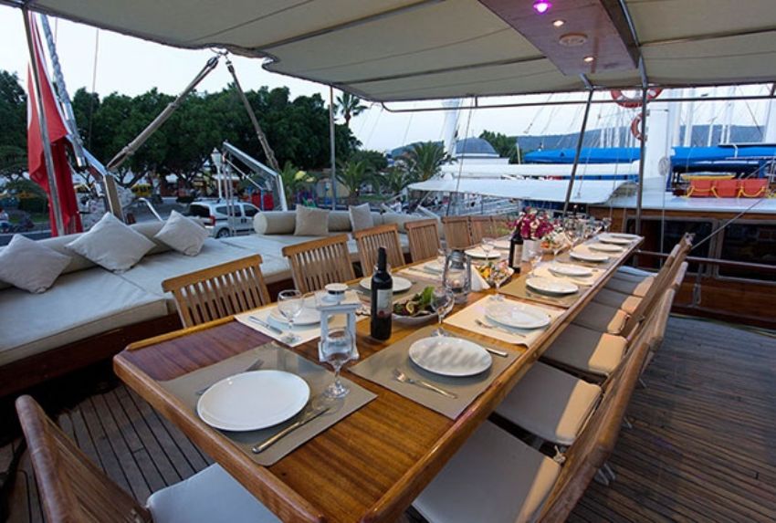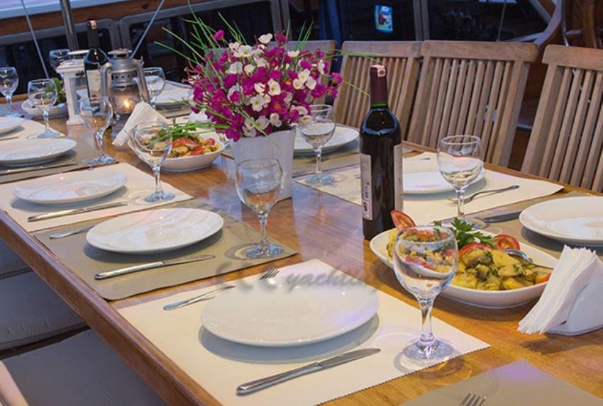 Dalış malzemeleri, Balık tutma malzemeleri, Güneş tenteleri, Güneş yatakları, Güvertede duş, Deniz merdiveni