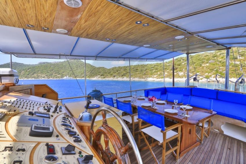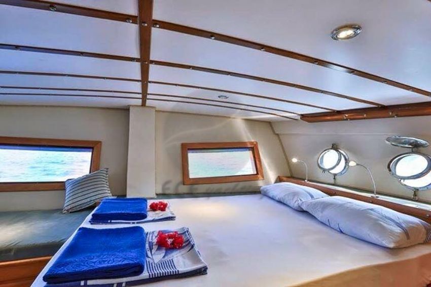 Dalış malzemeleri, Balık tutma malzemeleri, Güneş tenteleri, Güneş yatakları, Güvertede duş, Deniz merdiveni