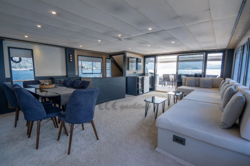 2008 yılında denize indirilen 30 metre boyundaki teknemiz, 2024 yılında komple revize edilmiştir. 1 vip, 1 master, 3 double olmak üzere toplam 5 kabini ile 10 kişi konaklama kapasitesine sahiptir. Deneyimli ve güler yüzlü 4 mürettebatımız misafir memnuniyeti odaklı hizmet vermektedir. Delüks kategoride yer alan teknemiz, mavi yolculukta ihtiyacınız olabilecek her detay düşünülerek donatılmış ve rüya gibi bir tatil geçirebilmeniz için kapılarını ardına kadar aralamıştır. Impact Yatı.
