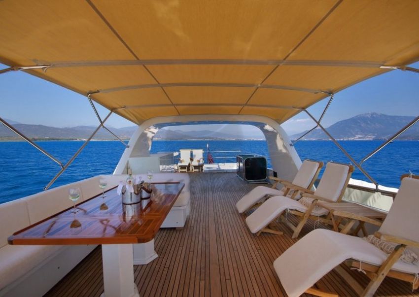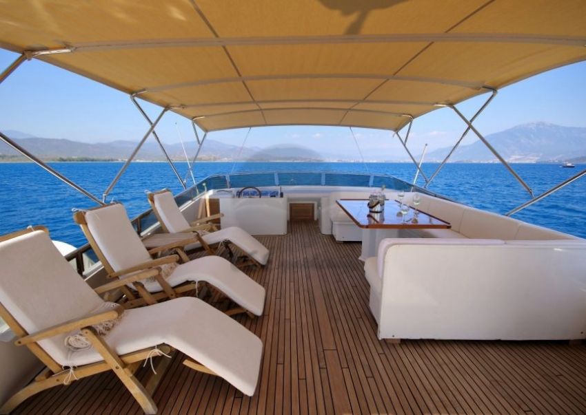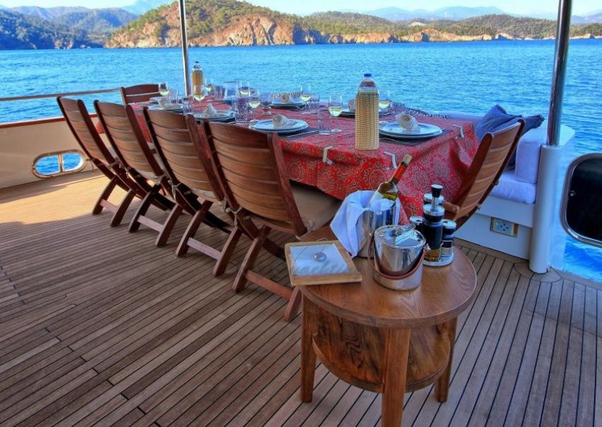 Şnorkel ekipmanları, Balık tutma malzemeleri, Güneş tenteleri, Güneş yatakları, Güvertede duş, Deniz merdiveni