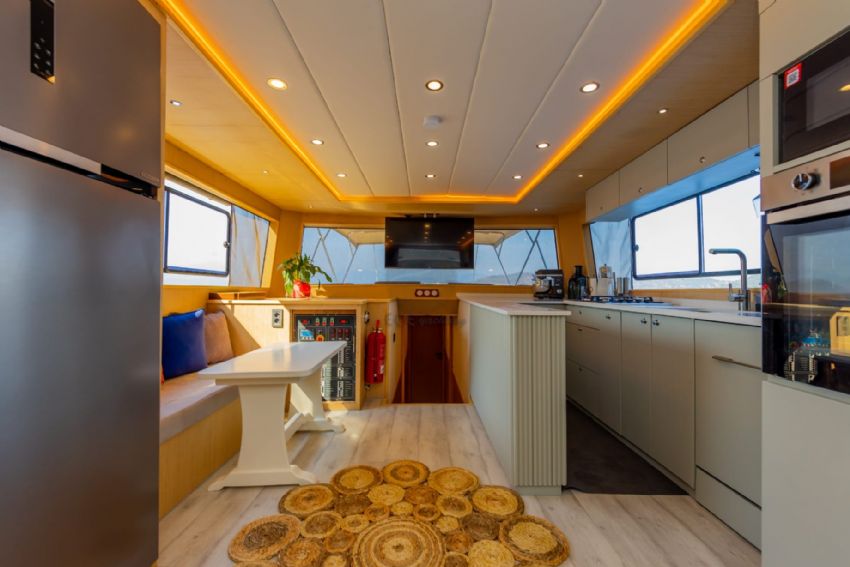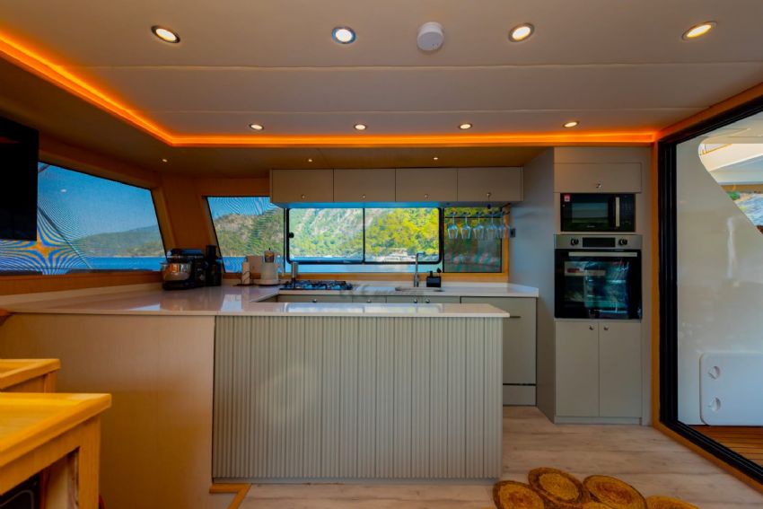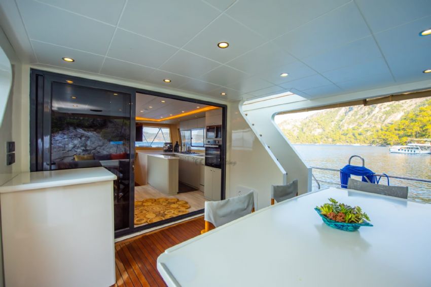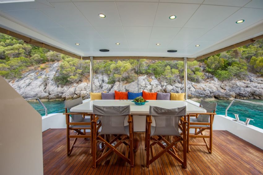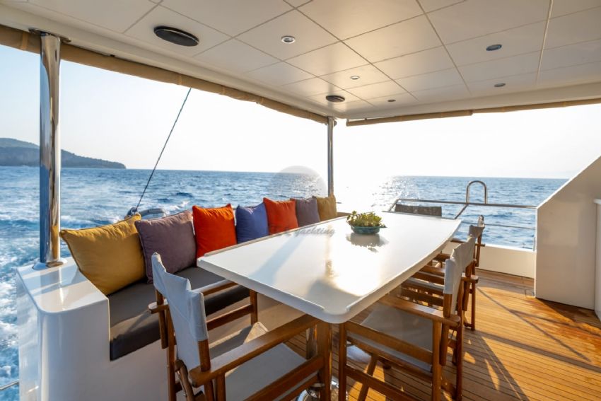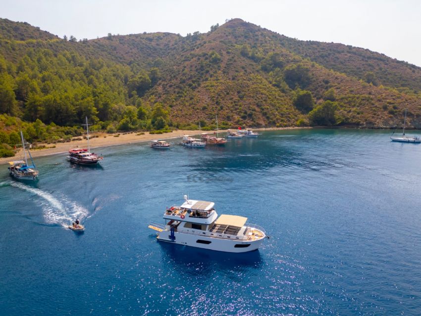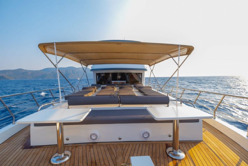 2024 yapımı ve 18 metre boyundaki 3 kabinli teknemiz, 6 kişiye kadar konaklama imkanı sağlamaktadır. Birbirinden şık, modern döşenmiş kabinler teknenin baş altındaki kısımda bir baş master ve 2 double kabin şeklindedir. Aydınlık ve ferah döşemesi ile dikkat çeken her kabinde banyo -WC bulunmaktadır. Ayrıca, ayrı mürettebat kabini de mevcuttur. Teknemiz Göcek limanına kayıtlı olmakla birlikte Göcek veya Fethiye limanından hareketle, 3 kişilik güler yüzlü ve tecrübeli mürettebatıyla küçük aile ve gruplara hizmet vermektedir. İnternet, TV, kano, su oyuncakları gibi olanaklar sunulan teknemizde konforlu bir tekne tatili yapabileceğinizi Ece Yatçılık olarak garanti ediyoruz.