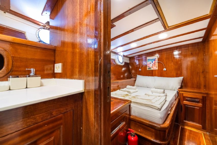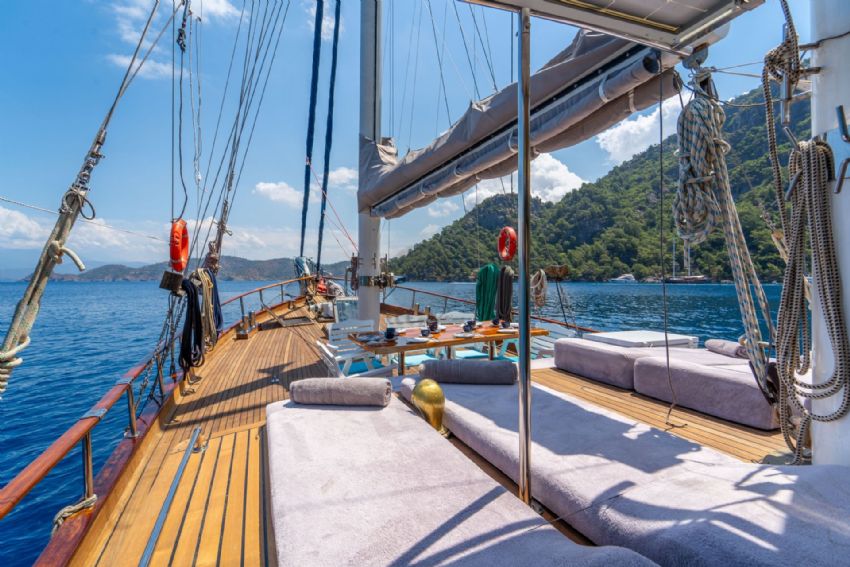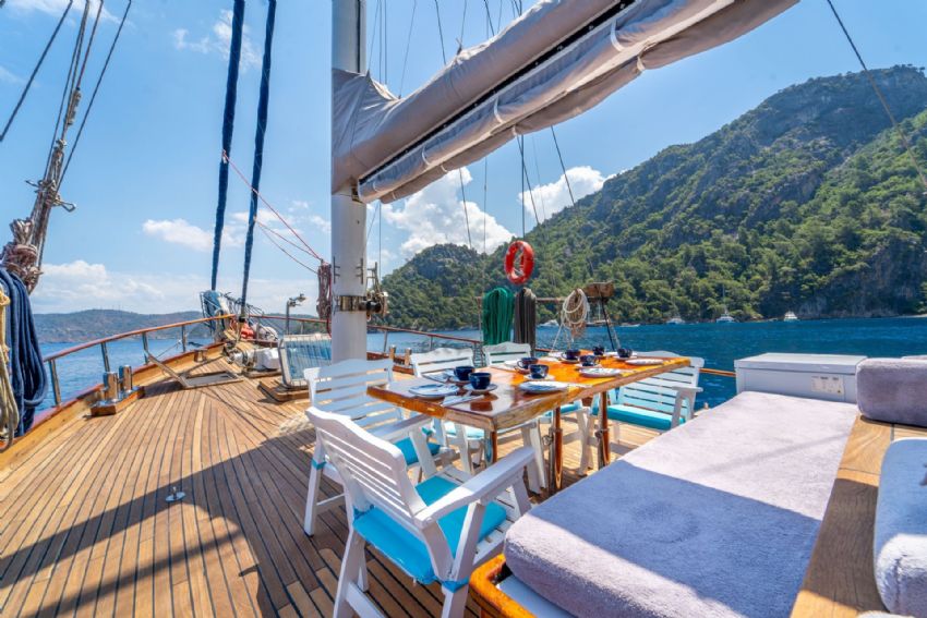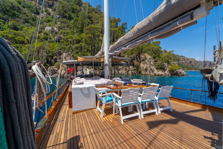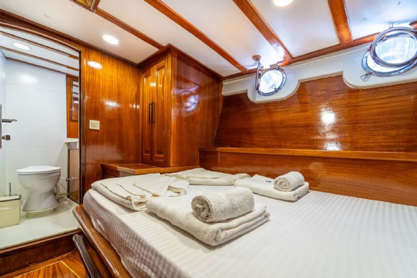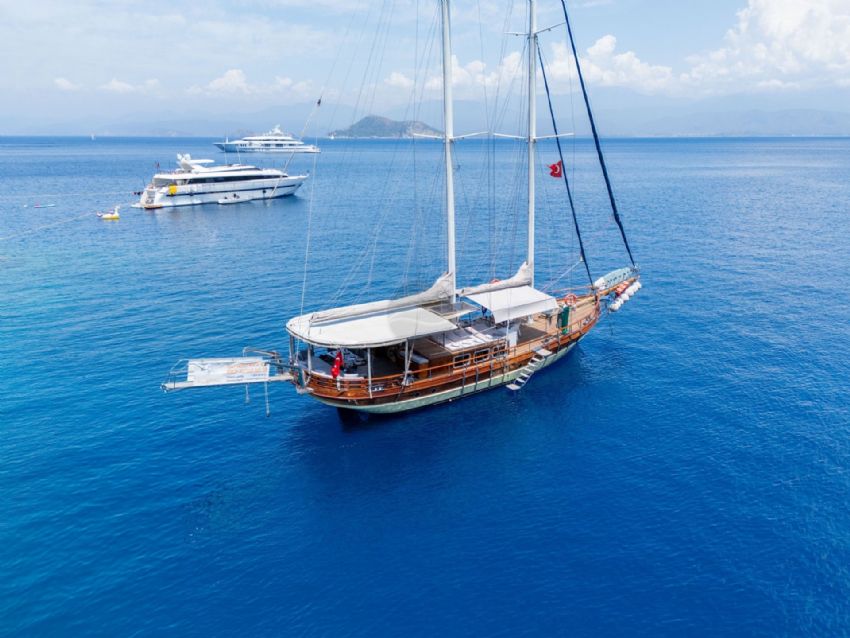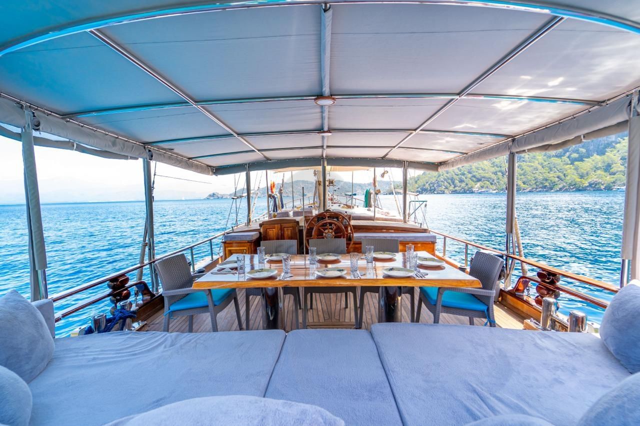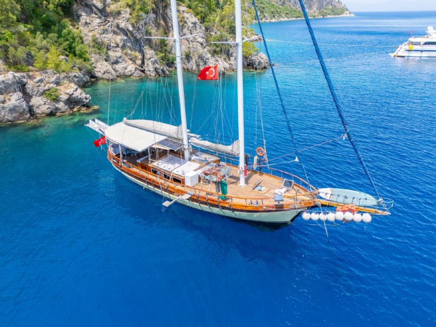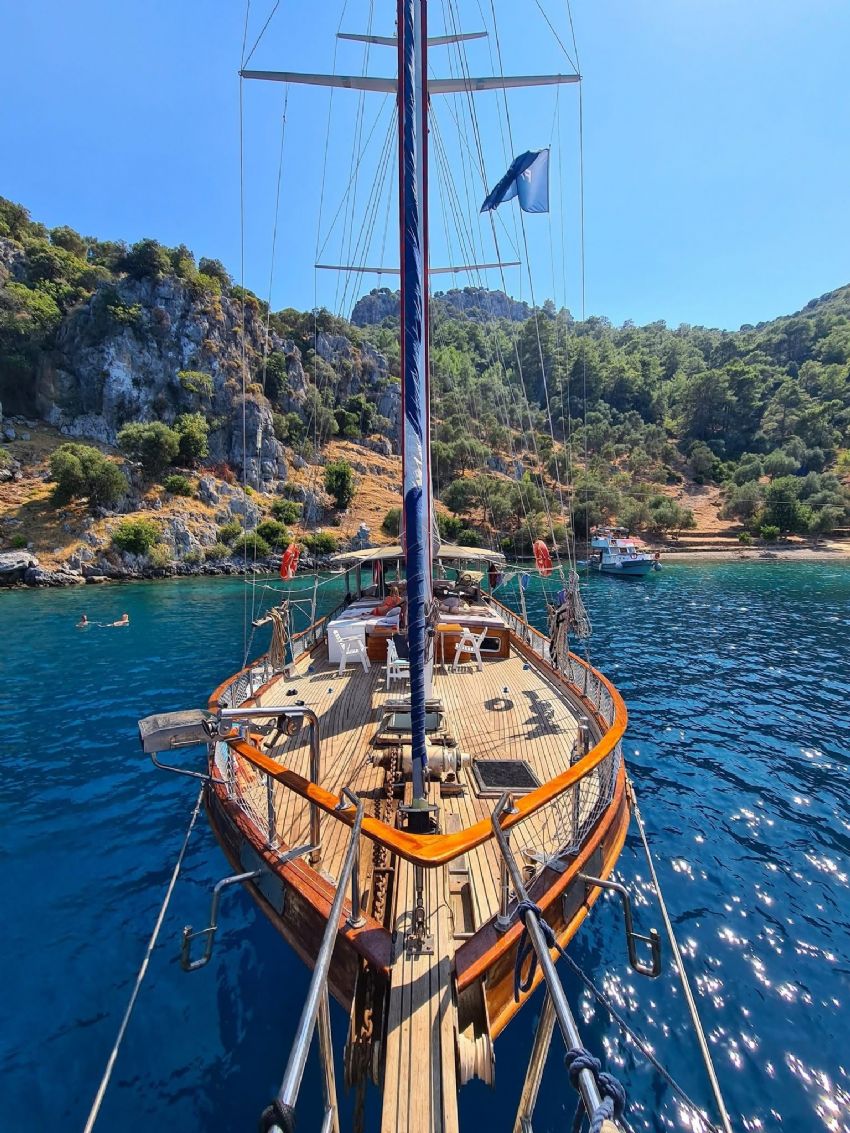 20 metre uzunluğundaki guletimiz, konforlu yaşam alanları ve güçlü yelken performansıyla Akdeniz ve Ege’nin eşsiz koylarında keyifli bir mavi yolculuk deneyimi sunar. Sağlam gövde yapısı ve dengeli seyir kabiliyeti sayesinde hem konfor hem de güvenli bir yolculuk arayan misafirler için ideal bir seçenektir.