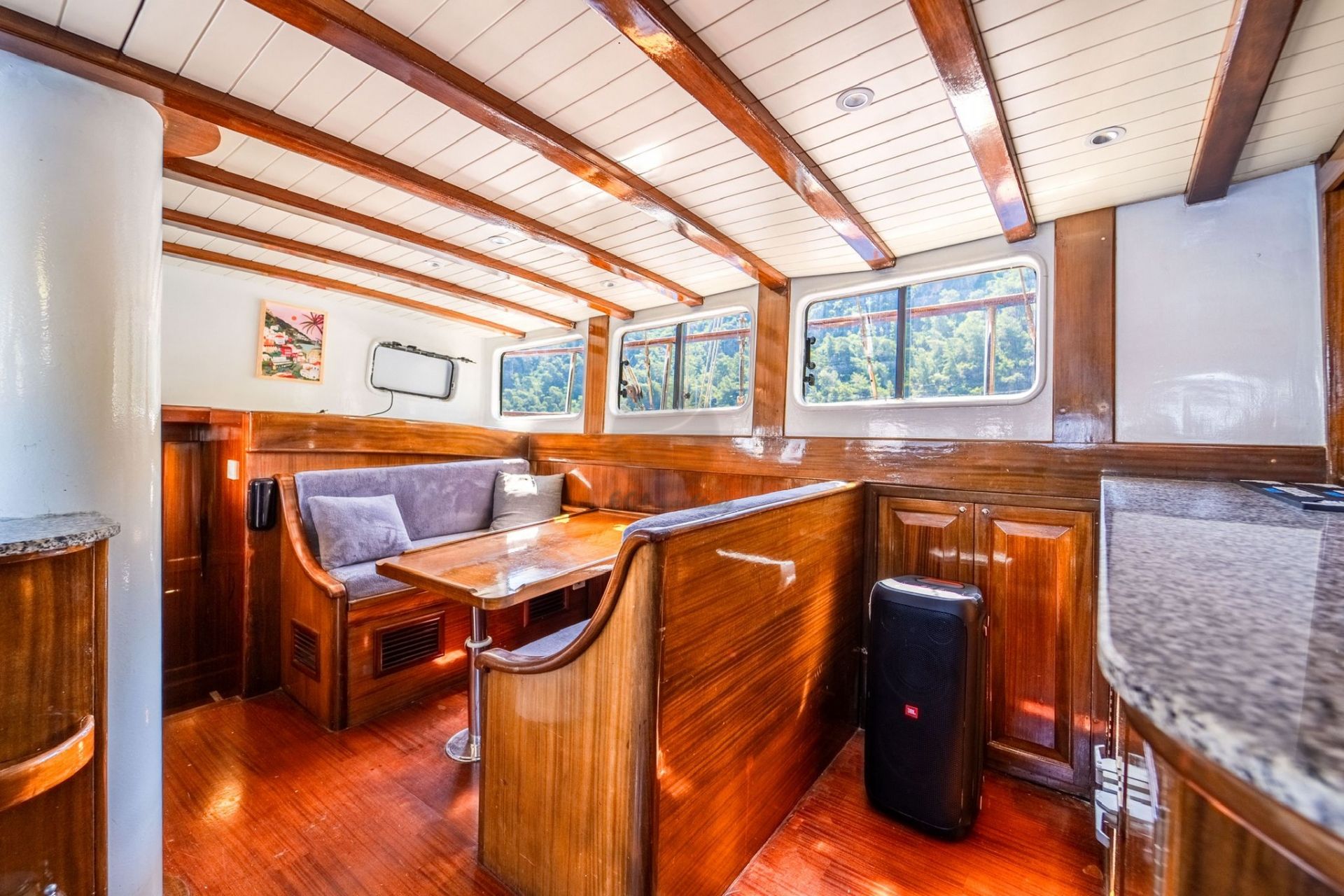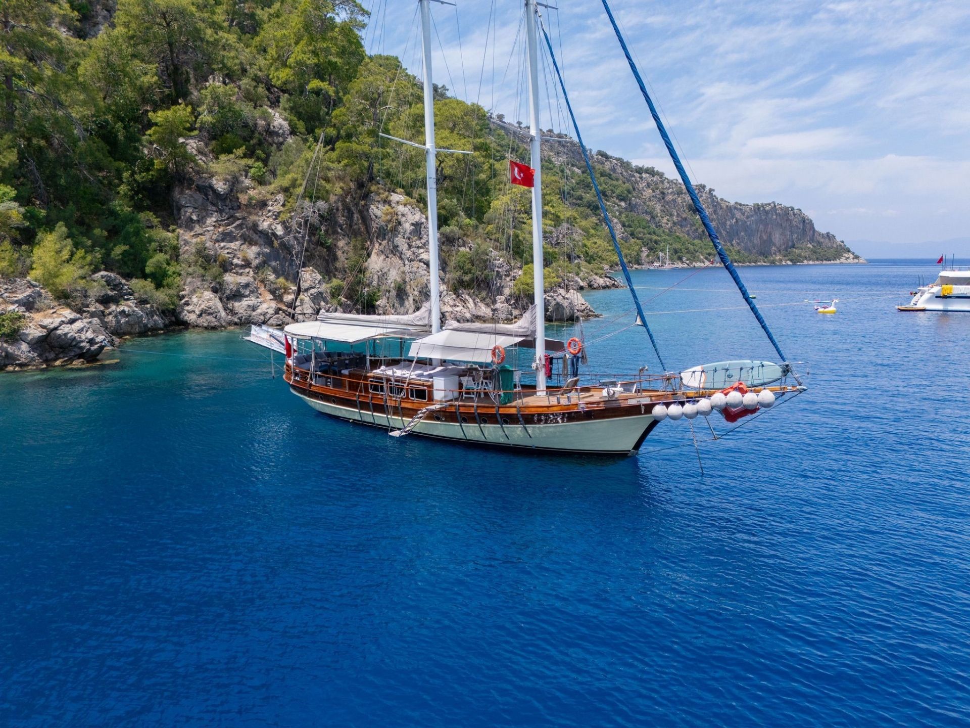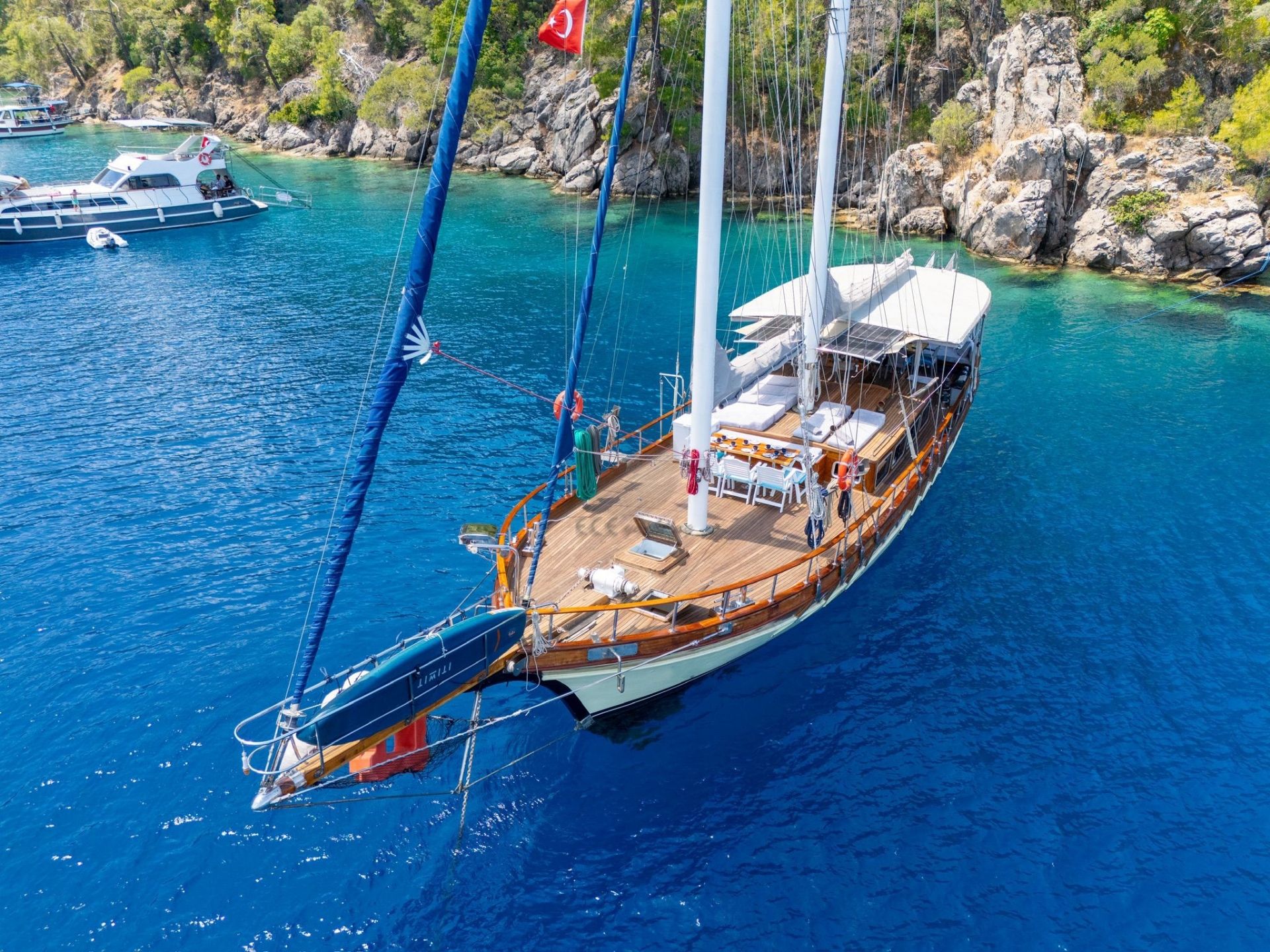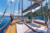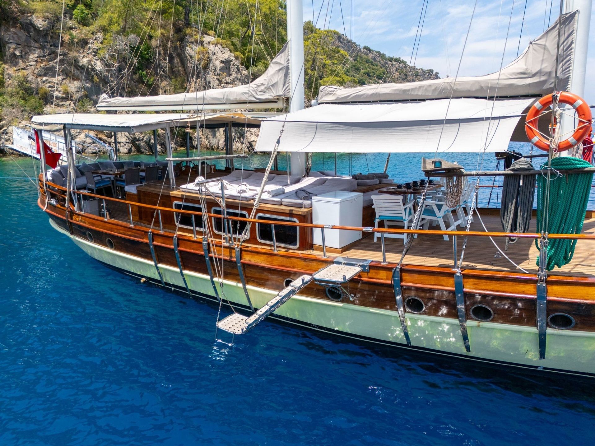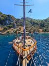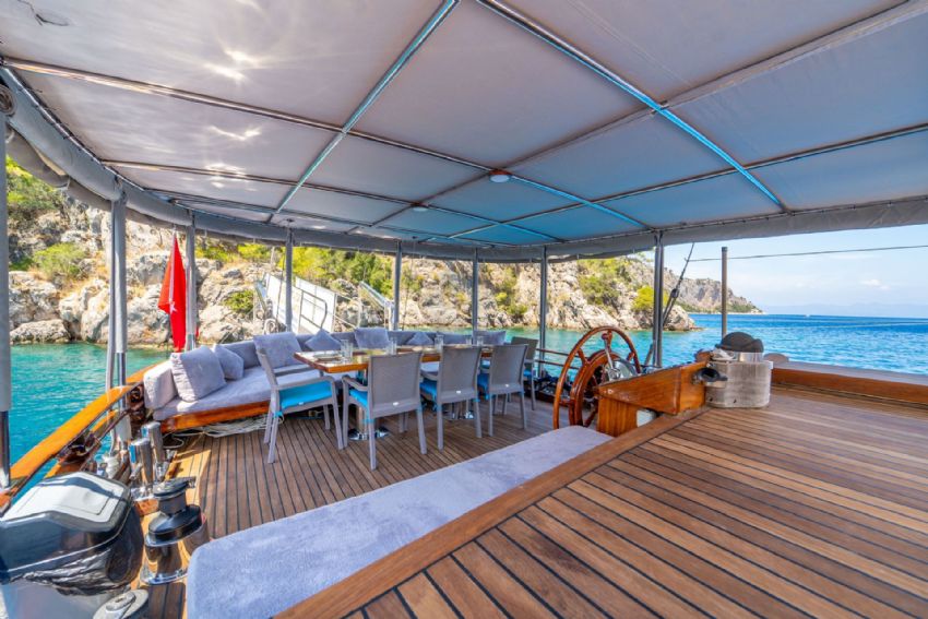 20 metre uzunluğundaki guletimiz, konforlu yaşam alanları ve güçlü yelken performansıyla Akdeniz ve Ege’nin eşsiz koylarında keyifli bir mavi yolculuk deneyimi sunar. Sağlam gövde yapısı ve dengeli seyir kabiliyeti sayesinde hem konfor hem de güvenli bir yolculuk arayan misafirler için ideal bir seçenektir.