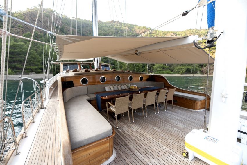 Şnorkel ekipmanları, Balık tutma malzemeleri, Güneş tenteleri, Güneş yatakları, Güvertede duş, Deniz merdiveni
