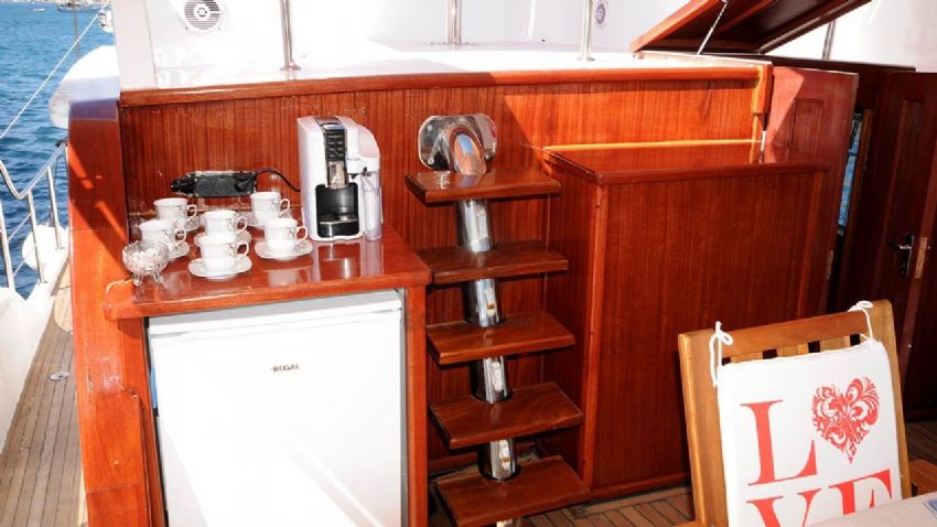 Şnorkel ekipmanları, Balık tutma malzemeleri, Güneş tenteleri, Güneş yatakları, Güvertede duş, Deniz merdiveni