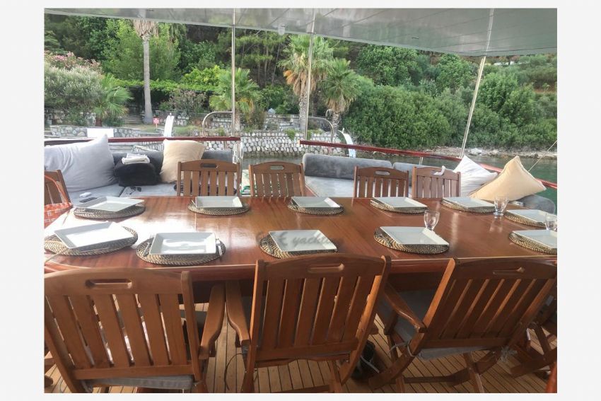 Şnorkel ekipmanları, Balık tutma malzemeleri, Güneş tenteleri, Güneş yatakları, Güvertede duş, Deniz merdiveni