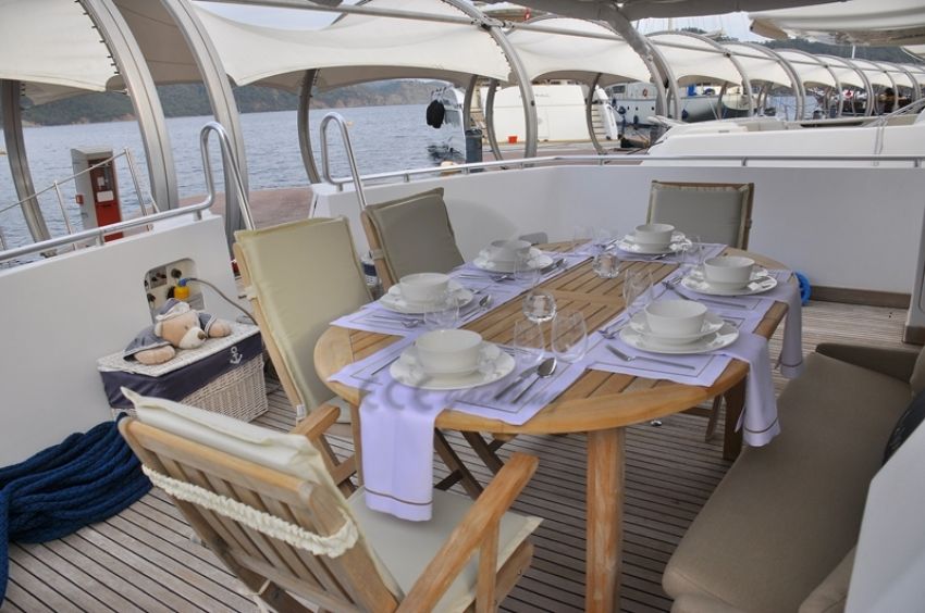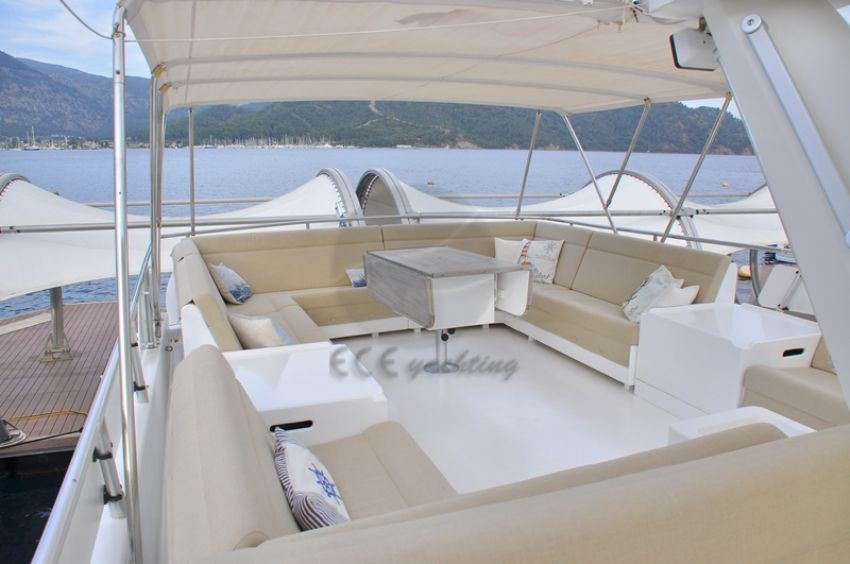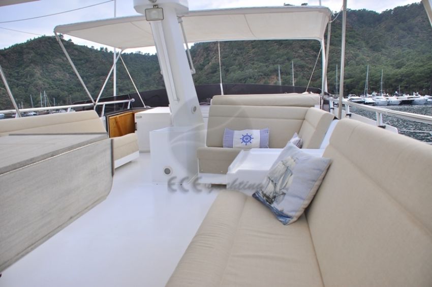 2017 yılında komple revize edilen teknemiz, mavi yolculuk tatilinizde ihtiyacınız olabilecek tüm detaylar düşünülerek düzenlenmiştir. 3 kabiniyle 6 kişiye kadar olan gruplarınıza hizmet verebilen teknemizde 3 kişilik deneyimli mürettebatımız tatiliniz boyunca sizlere eşlik etmektedir. Gemici ve aşçımızın bayan olmasından dolayı özellikle mutaassıp aileler arasında dikkat çeken teknemizde, talep halinde kaptanımız gün içinde tekneden ayrılabilmektedir. 20 m. uzunluğundaki teknemizin flybridge diye adlandırdığımız üst yaşam alanında da denizin ve yemyeşil doğanın tadını çıkarabileceğiniz konforlu bir bölüm bulunmaktadır. M/Y La Joya Motoryat