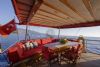 Teknede gün, özenle hazırlanan kahvaltıyla başlar; gün boyu sunulan lezzetler ve akşam ay ışığında servis edilen keyifli akşam yemekleriyle unutulmaz bir mavi yolculuk deneyimine dönüşür.