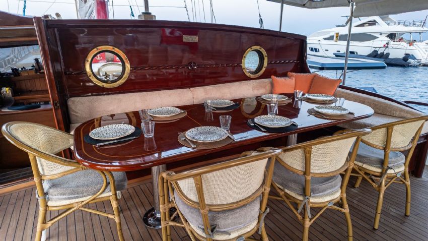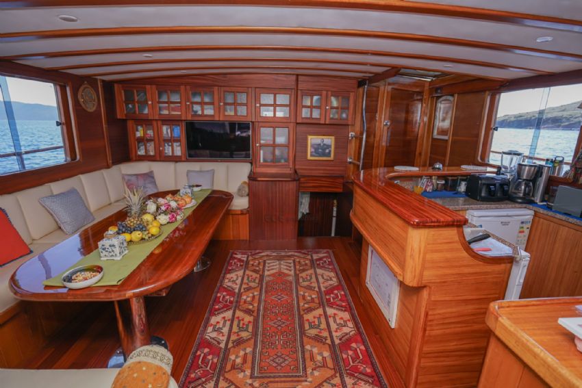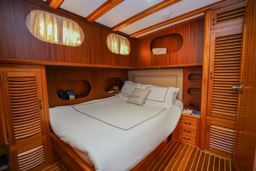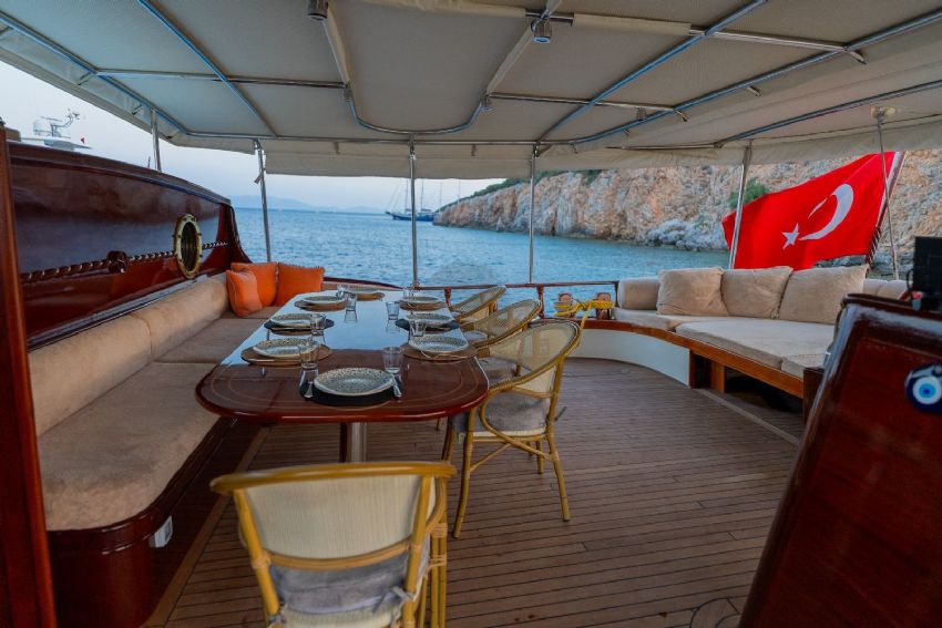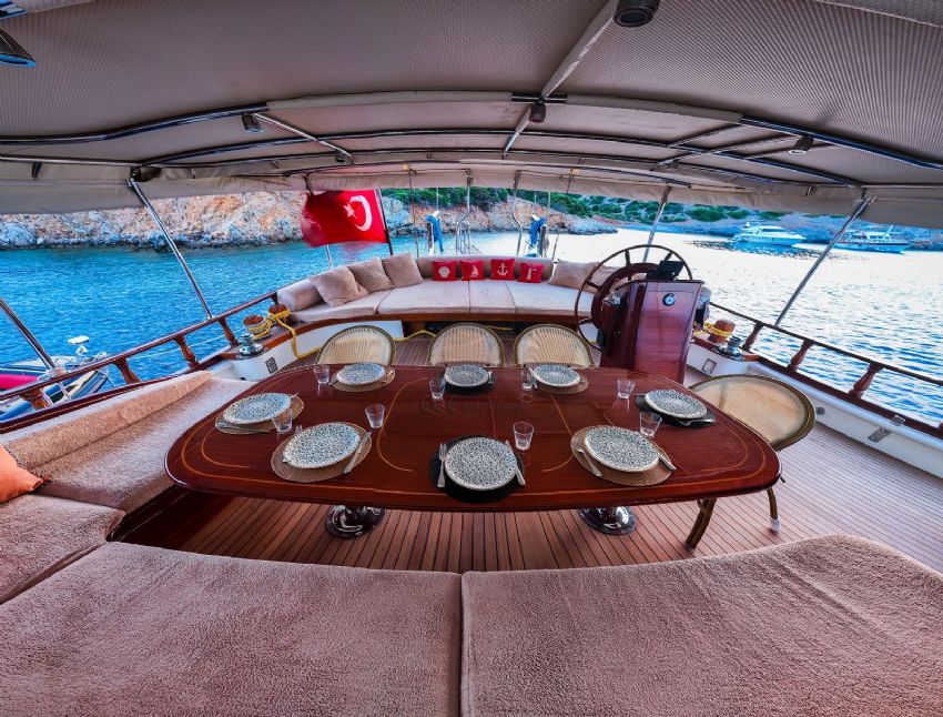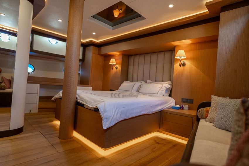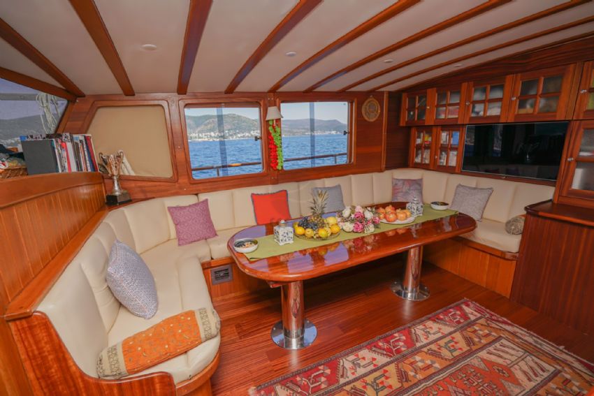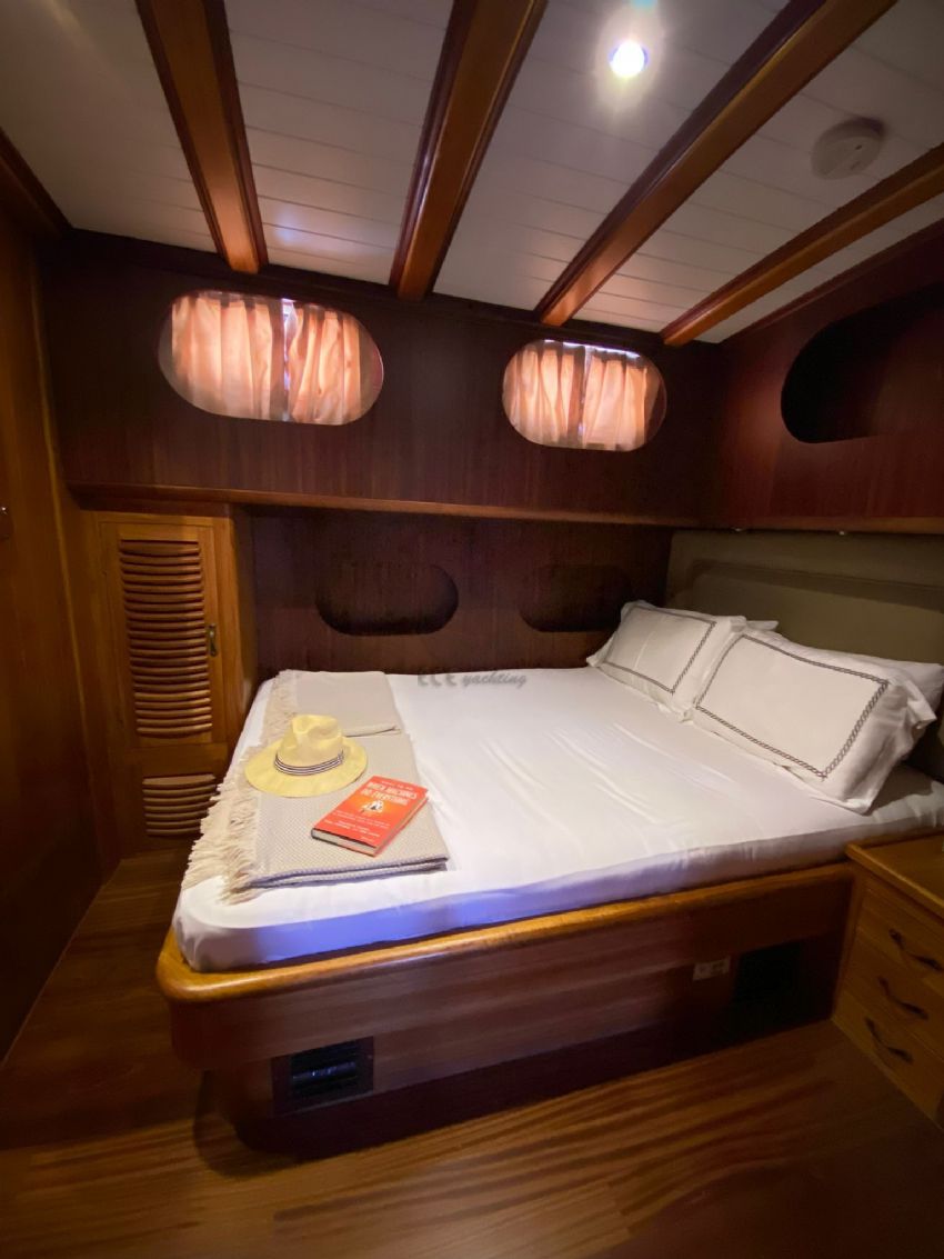 2024 yılında tadilat yapıldıktan sonra çok daha şık bir hal alan lüks teknemiz, yelken donanımı ile görenleri kendine hayran bırakmaktadır. Teknemiz 1 master, 2 double ve 2 twin olmak üzere 5 kabini ile 10 kişiye kadar olan gruplara hizmet verebilmektedir. Teknemizin her kabininde klima, duş kabinli banyo / wc bulunmaktadır. Ayrıca salonda tv izleme imkanı bulunmakta ve serin havalarda salon yemek masası kullanılabilmektedir. Lüks yatımızın arka güvertede yemek masası, ön güvertede ise içeceğinizi yudumlayacağınız masa bulunmaktadır. Güneşlenme alanı ve zemininin tik ağacından olması teknemizi güzel gösteren ayrıntılardandır. Levent Kaptan 1 Yatı