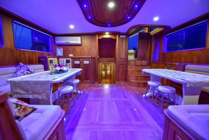 Şnorkel ekipmanları, Balık tutma malzemeleri, Güneş tenteleri, Güneş yatakları, Güvertede duş, Deniz merdiveni