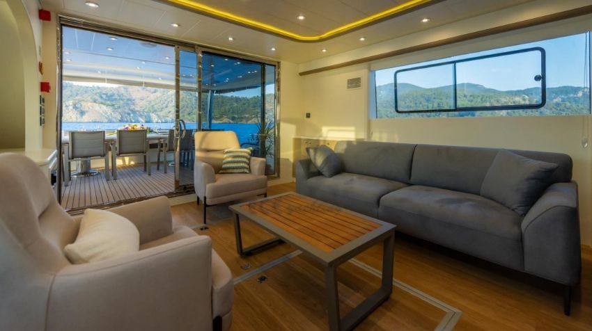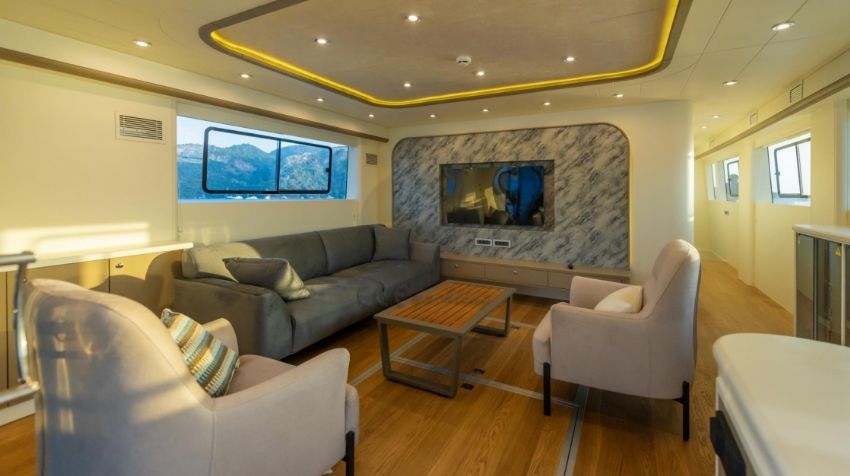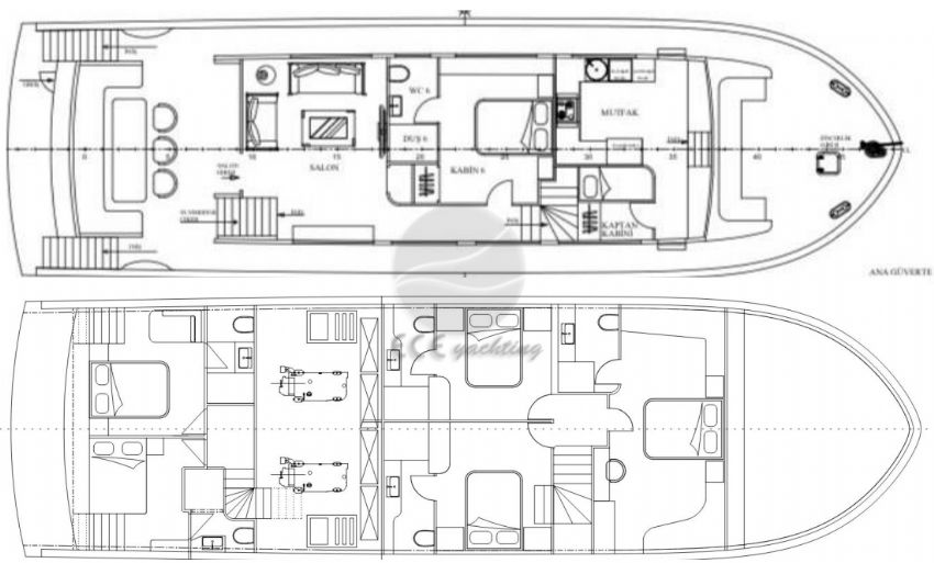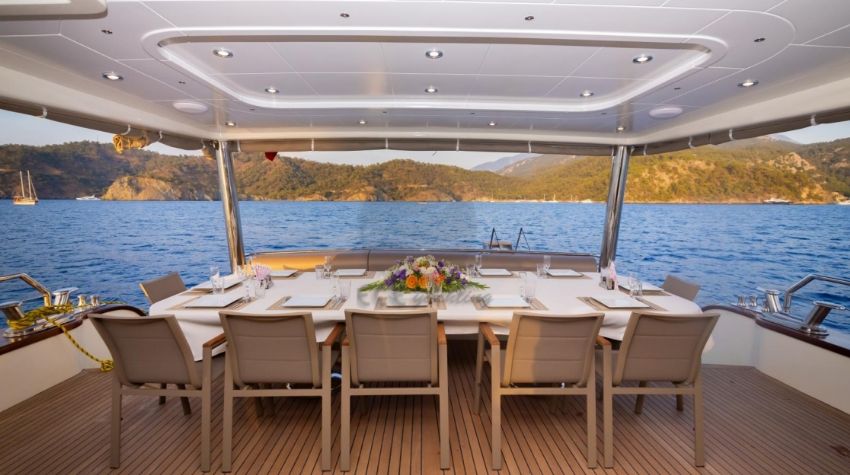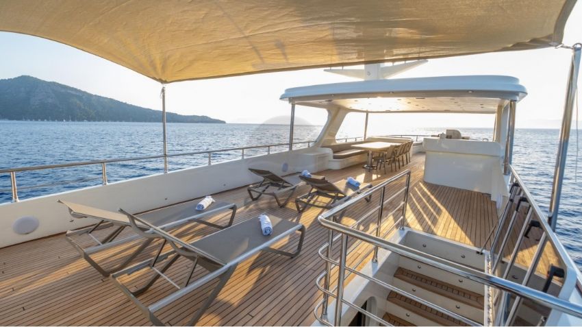 Şnorkel ekipmanları, Balık tutma malzemeleri, Güneş tenteleri, Güneş yatakları, Güvertede duş, Deniz merdiveni
