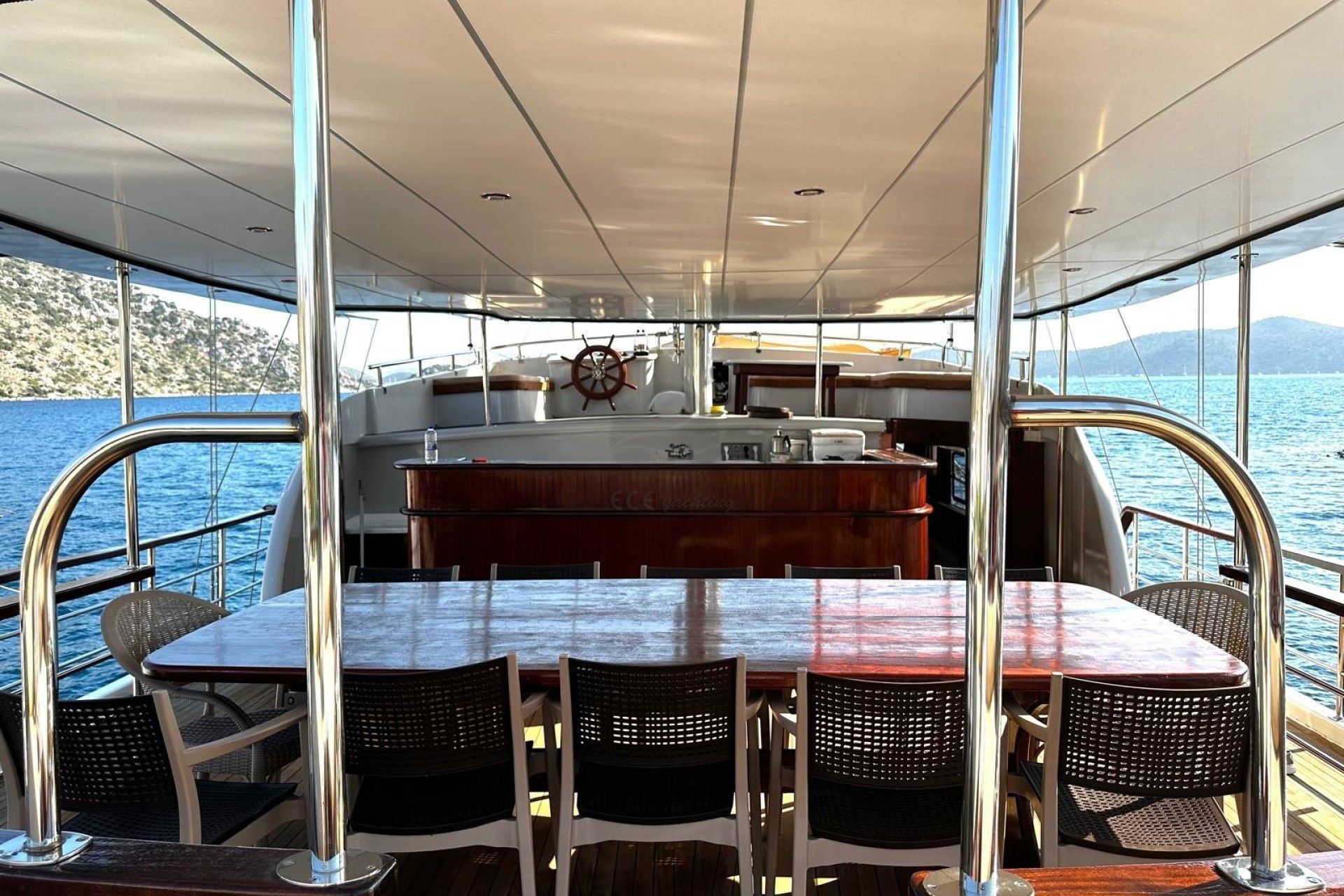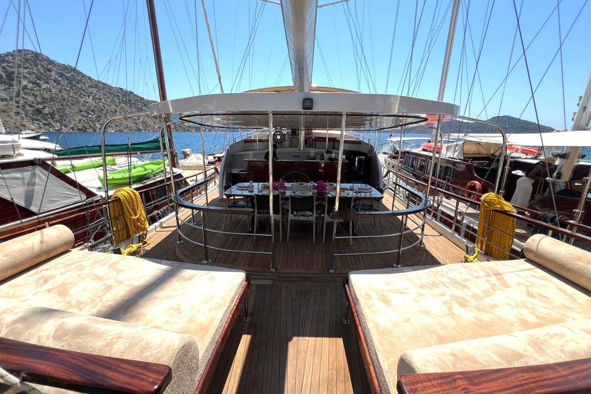 Geniş güverte alanları ve profesyonel mürettebatı ile, hem konforlu bir tatil hem de otantik gulet deneyimini bir arada sunar.