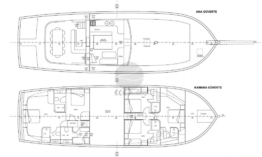 10 knot seyir hızına sahip olan gulet, tam donanımlı navigasyon ve güvenlik sistemleri ile güvenli bir seyir sunar.