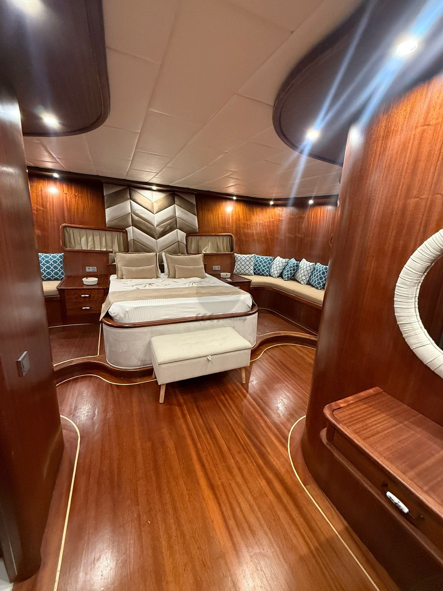 24 metrelik zarif tasarımıyla geleneksel gulet işçiliğini modern konforla buluşturan seçkin bir lüks gulet seçeneğidir. Türkiye’nin eşsiz koylarında unutulmaz bir mavi yolculuk deneyimi sunmak üzere tasarlanmıştır.
