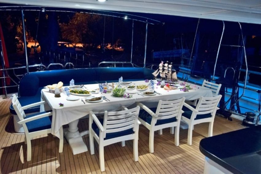 2014 sezonu Temmuz ayında denize indirilen teknemiz, 10 kişiye kadar olan grupları misafir edecek şekilde mavi yolculuk hizmeti verilebilmektedir. Teknemiz modern teknolojiye göre tasarlanmış ve makyaj landırılmıştır. Teknemizde ön ve arka güvertede farklı yaşam alanları mevcuttur. Maske isimli yatımızın tüm kabinlerinde 24 saat klima, tv, cd ve dvd oynatıcı, müzik sistemi ve ayrıca Türk karasularında internet bulunur. Teknemizin iç ve dış dizaynında beyaz renk kullanılmış ve modern bir hava yaratılmıştır. Maske Yatı.