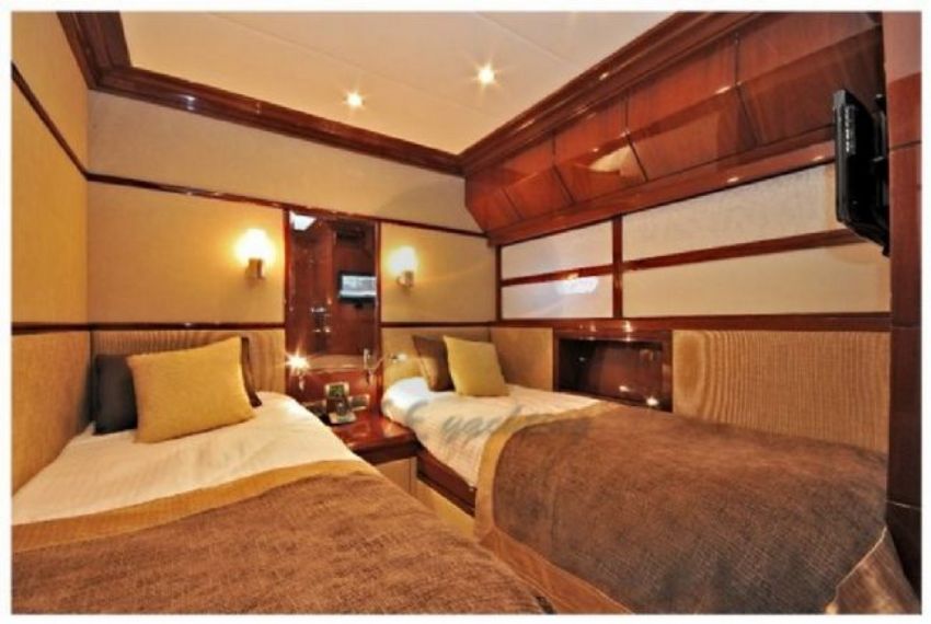 2010 yılında yapılan teknemiz, mavi yolculuk boyunca ihtiyacınız olabilecek her detay düşünülerek tasarlanmıştır. 26 metre uzunluğundaki bu muhteşem yatımızda, 1 master, 1 vip ve 2 double kabinimizle 8 kişiye kadar olan nezih gruplarınızı ultra lüks kalitede ağırlamaktayız. Deneyimli ve profesyonel 4 kişilik mürettebatımız misafir memnuniyeti odaklı servisiyle hizmet vermektedir. M/Y M.T. Time Motoryat.