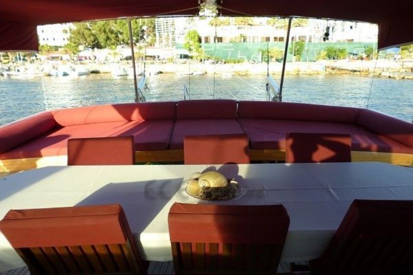 Şnorkel malzemeleri, Balık tutma malzemeleri, Güneş tenteleri, Güneş yatakları, Güvertede duş, Deniz merdiveni