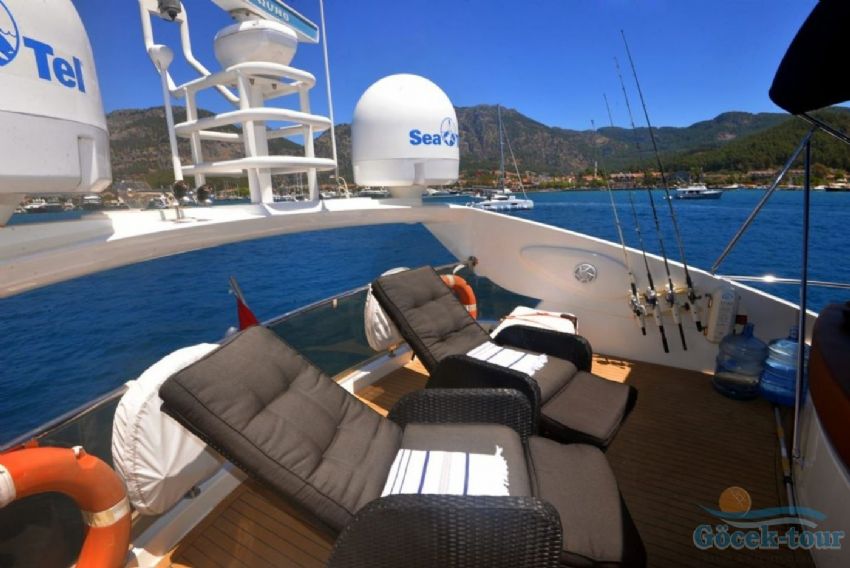 Şnorkel ekipmanları, Balık tutma malzemeleri, Güneş tenteleri, Güneş yatakları, Güvertede duş, Deniz merdiveni