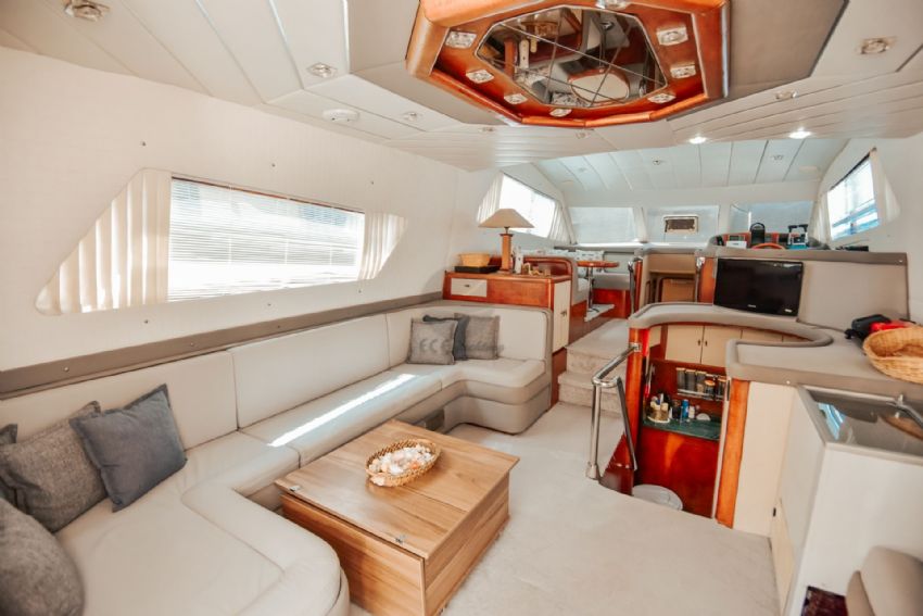 Bar, Salon yemek masası, Konforlu Oturma Alanı, Modern mobilyalı, Klasik mobilyalı, Flybridge, Tam donanımlı