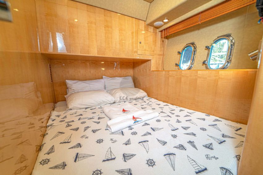 My Imera, 16,85 metre uzunluğunda, 2008 yılında inşa edilmiş ve 2018'de yenilenmiş lüks bir motoryattır. Göcek limanından hareket eden bu zarif yat, 6 kişiye kadar konaklama imkanı sunan 3 konforlu kabine sahiptir: 1 master, 1 double ve 1 twin kabin. Her kabin, misafirlerin rahatlığı düşünülerek özenle tasarlanmıştır.