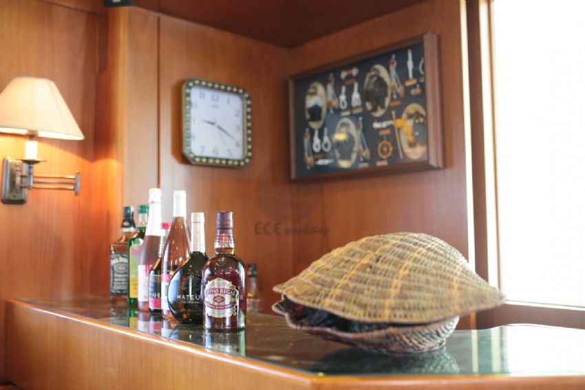 Şnorkel ekipmanları, Balık tutma malzemeleri, Güneş tenteleri, Güneş yatakları, Güvertede duş, Deniz merdiveni