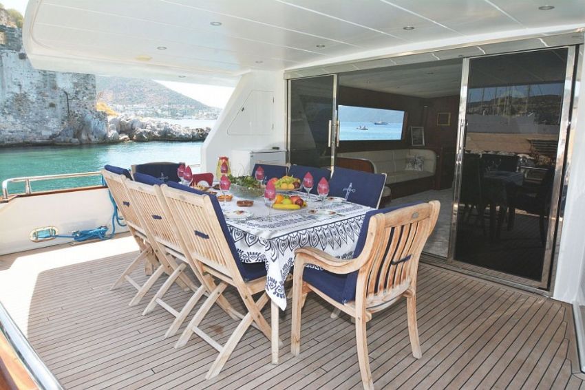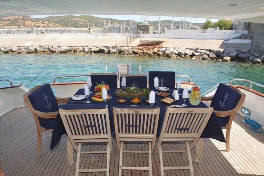 Şnorkel ekipmanları, Balık tutma malzemeleri, Güneş tenteleri, Güneş yatakları, Güvertede duş, Deniz merdiveni