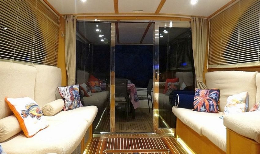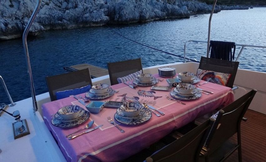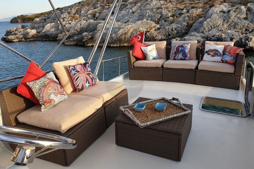 Şnorkel ekipmanları, Balık tutma malzemeleri, Güneş tenteleri, Güneş yatakları, Güvertede duş, Deniz merdiveni