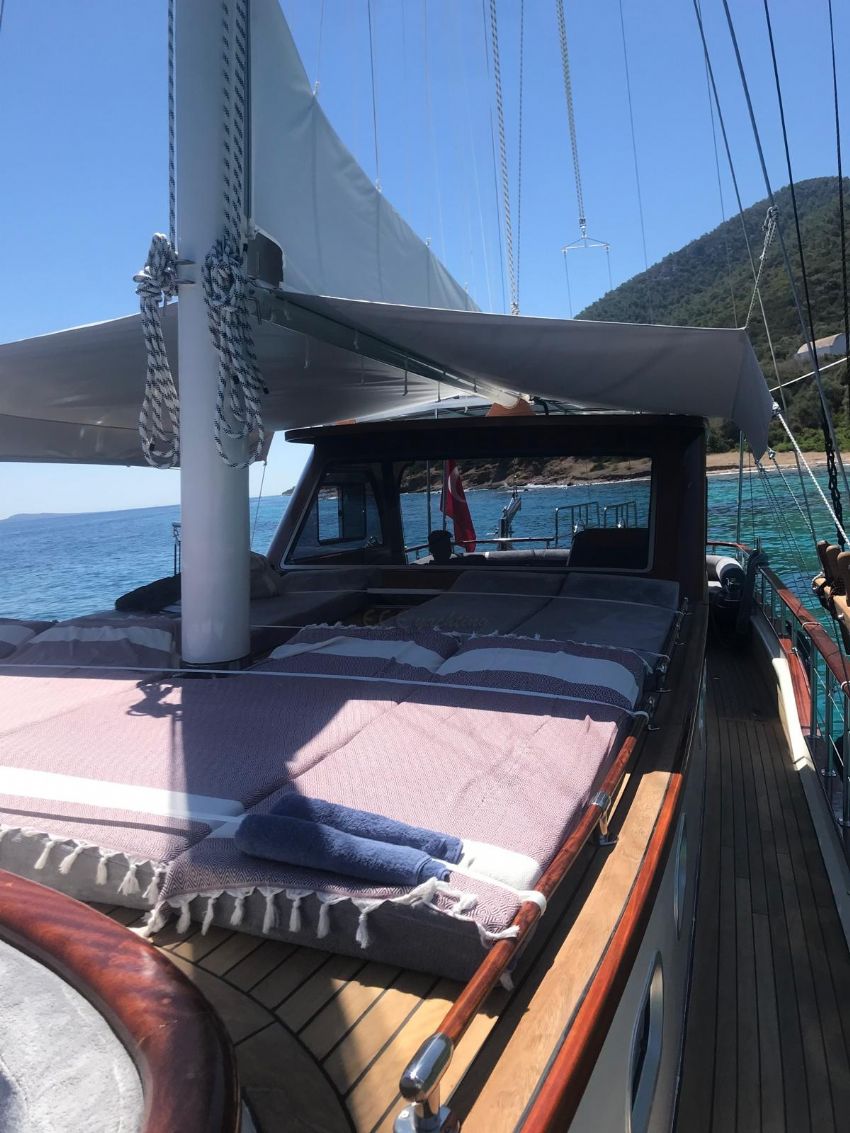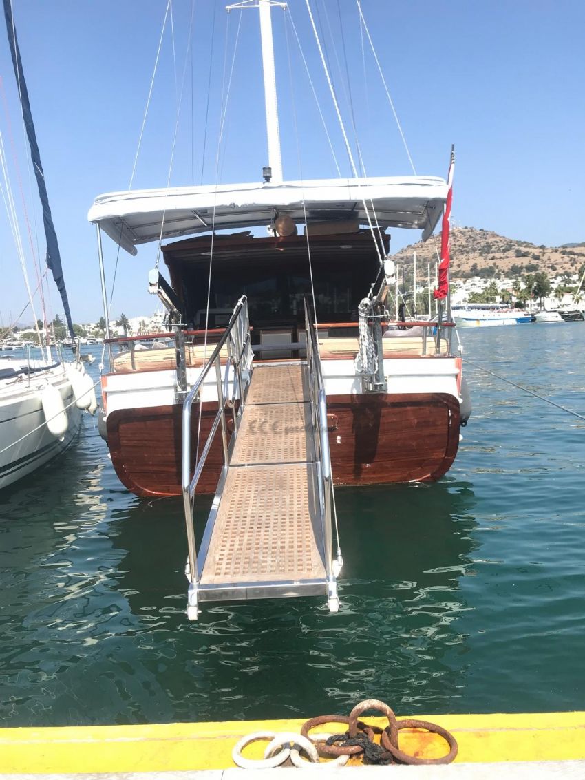2024 yılında yapımı tamamlanıp suyla buluşan teknemiz, siz değerli misafirlerimize Bodrum’un eşsiz koylarını keşfettirmek için hazır. Bodrum çıkışlı günübirlik veya 3-4 günlük konaklamalı turlarımızda, deneyimli kaptanımız ve aşçımız eşliğinde hem muhteşem koyların tadını çıkarabilir hem de özenle hazırlanan leziz yemeklerimizin keyfine varabilirsiniz.