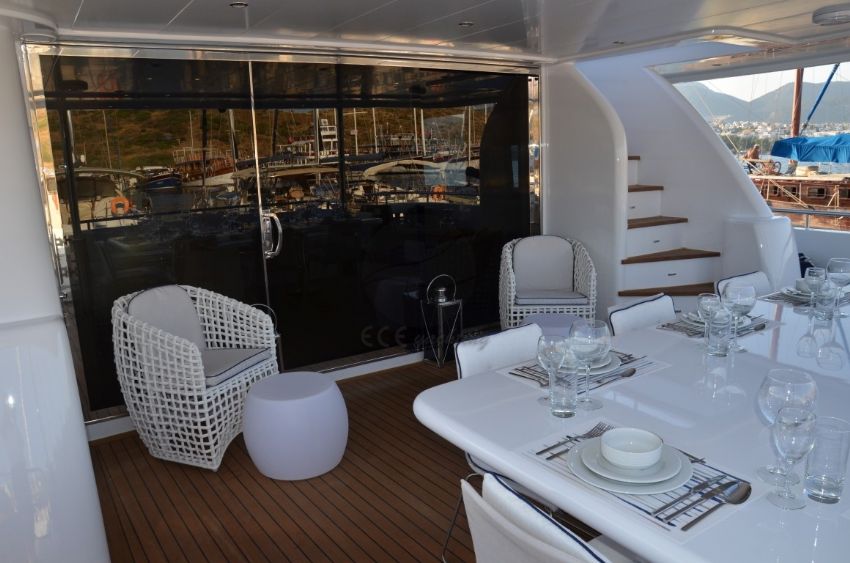 Bar, Salon yemek masası, Konforlu Oturma Alanı, Modern mobilyalı, Klasik mobilyalı, Flybridge, Tam donanımlı