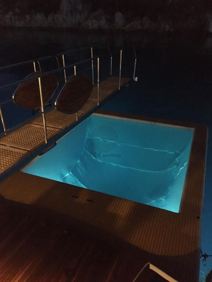 Şnorkel ekipmanları, Balık tutma malzemeleri, Güneş tenteleri, Güneş yatakları, Güvertede duş, Deniz merdiveni