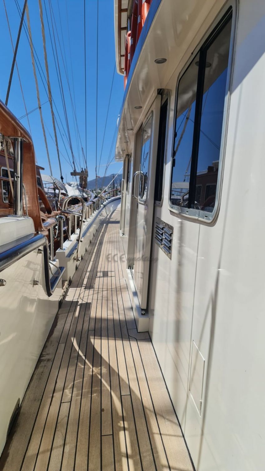 2014 yılında denize indirilen teknemiz, ilk günden bu yana geniş ve konforlu yaşam alanları ve profesyonel ekibiyle mavi yolculuk güzergahında dikkat çekmektedir. Her biri alanında deneyimli ve güler yüzlü mürettebatımız misafir memnuniyeti odaklı hizmet vermektedir. Lüks yatımızda fly-bridge diye adlandırdığımız çok geniş ve keyifli bir üst yaşam alanı mevcuttur. Ayrıca arka güvertede masa ve oturma alanları ve ön güvertede güneşlenme alanı mevcuttur. Teknemizde arka kısmında double yataklı bir master kabin, baş kısmında (1 double, 1 single toplam iki yataklı triple) bir master kabin, 4 Triple, 2 double kabin bulunur. Teknemizin tüm kabinlerinde ve salonda klima 24 saat kullanılmaktadır. Teknemiz de Türk karasularında internet bağlantısı da bulunur. Gezilen koylarda arkaya kurulan havuz platformu teknelerde nadir bulunan bir olanaktır. OGUZ BEY Yatı.
