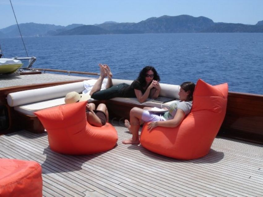 Şnorkel ekipmanları, Balık tutma malzemeleri, Güneş tenteleri, Güneş yatakları, Güvertede duş, Deniz merdiveni