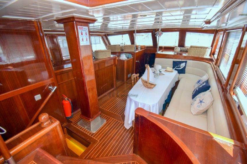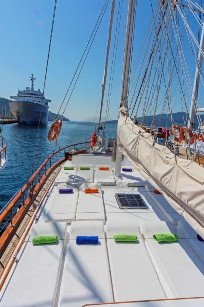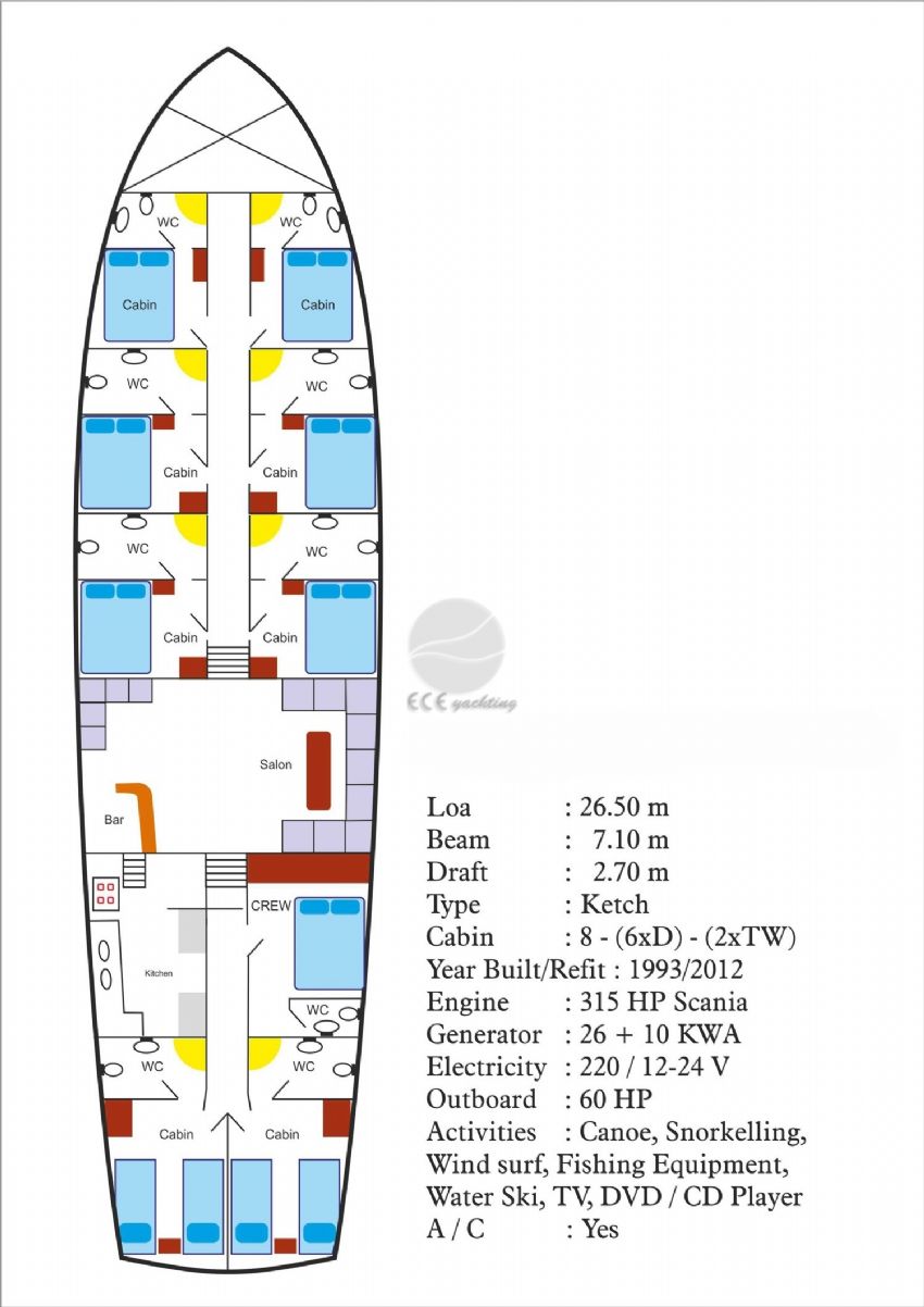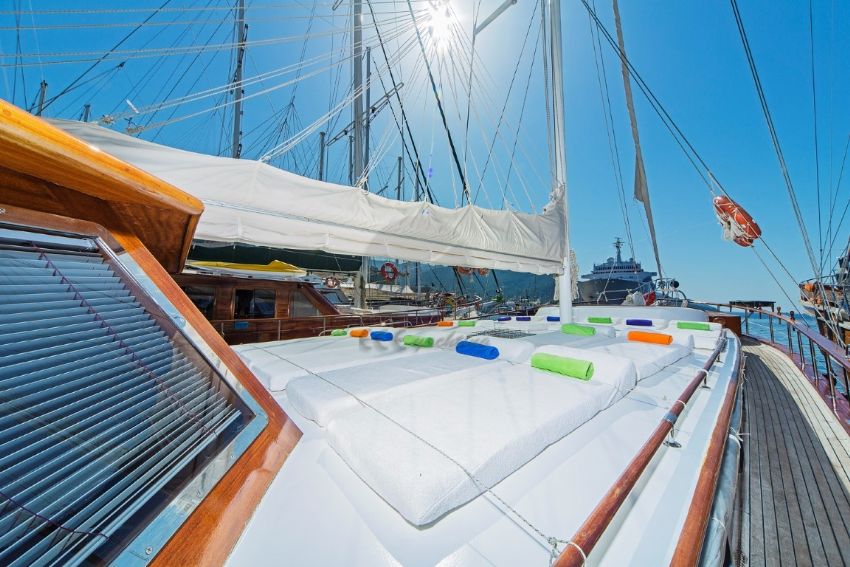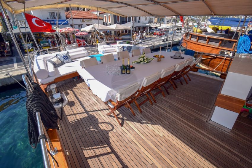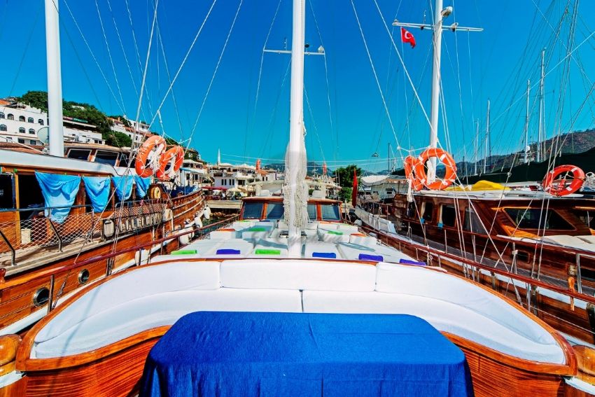 2012 yılında revize edilen teknemiz, 8 klimalı ve konforlu kabiniyle mavi yolculuk hizmeti vermektedir. Geniş ve rahat yaşam alanlarıyla dikkat çeken teknemizde, 16 kişiye kadar olan nezih gruplarınızı ağırlayabilmekteyiz. Her biri alanında deneyimli ve güler yüzlü mürettebatımızın, misafir memnuniyeti odaklı servis anlayışıyla tatilinizden unutulmaz anılarla ayrılacaksınız. Perla Del Mar 1 Yatı.