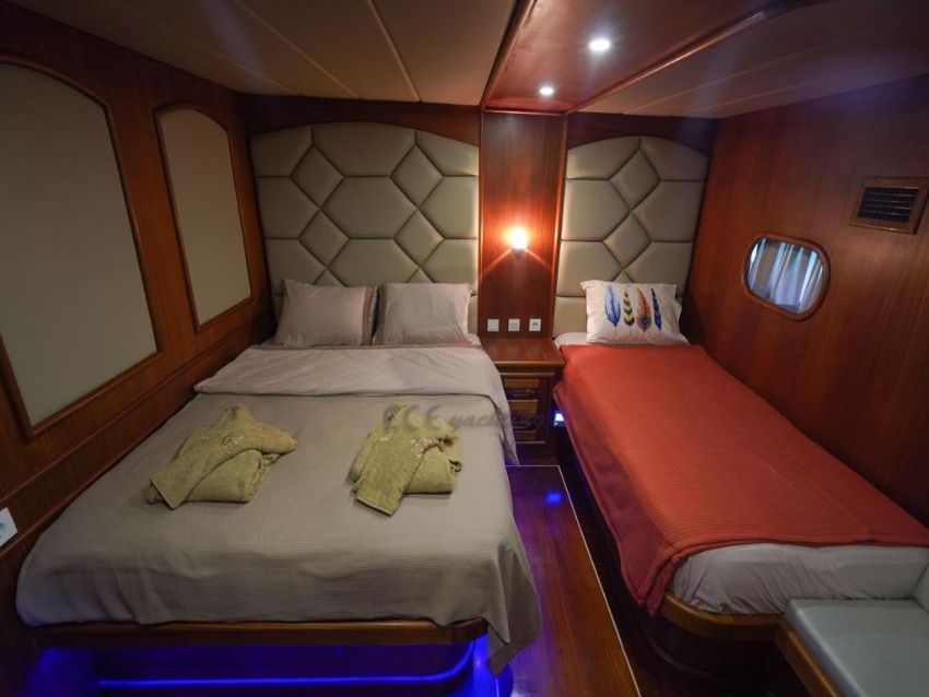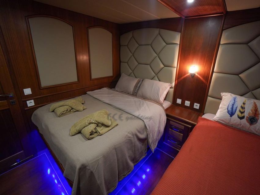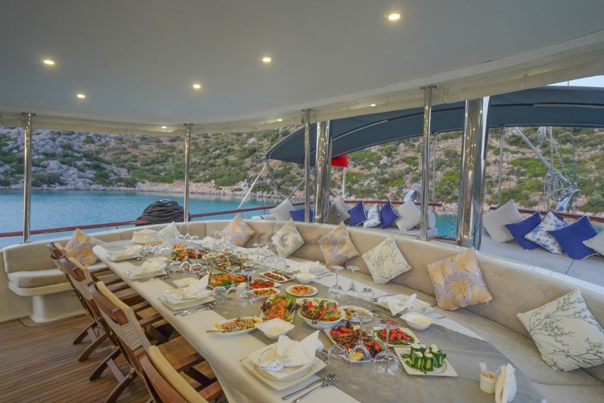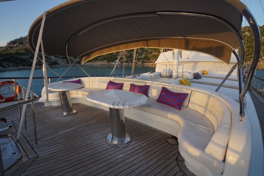 Şnorkel ekipmanları, Balık tutma malzemeleri, Güneş tenteleri, Güneş yatakları, Güvertede duş, Deniz merdiveni